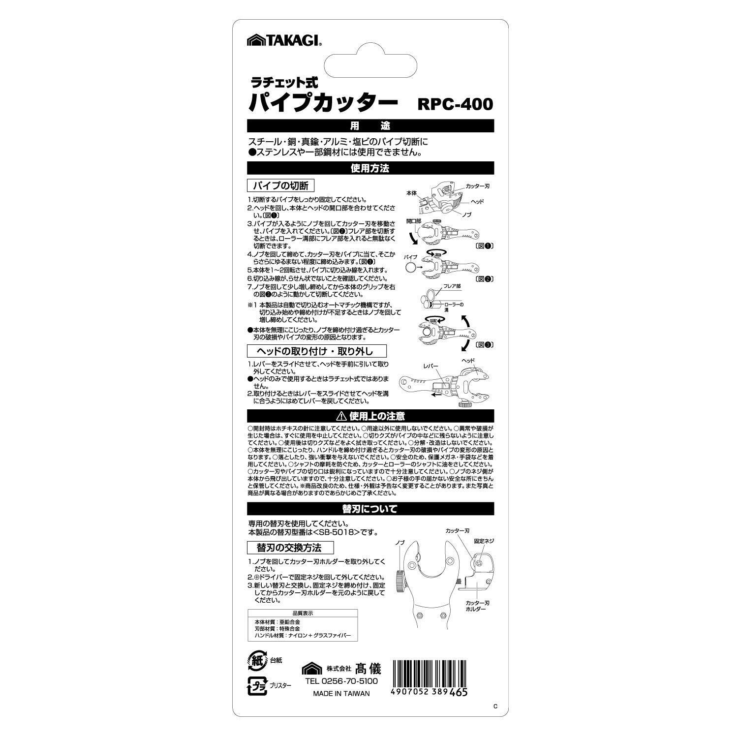 高儀(Takagi) GISUKE ラチェット式 パイプカッター φ6~28mm RPC-400