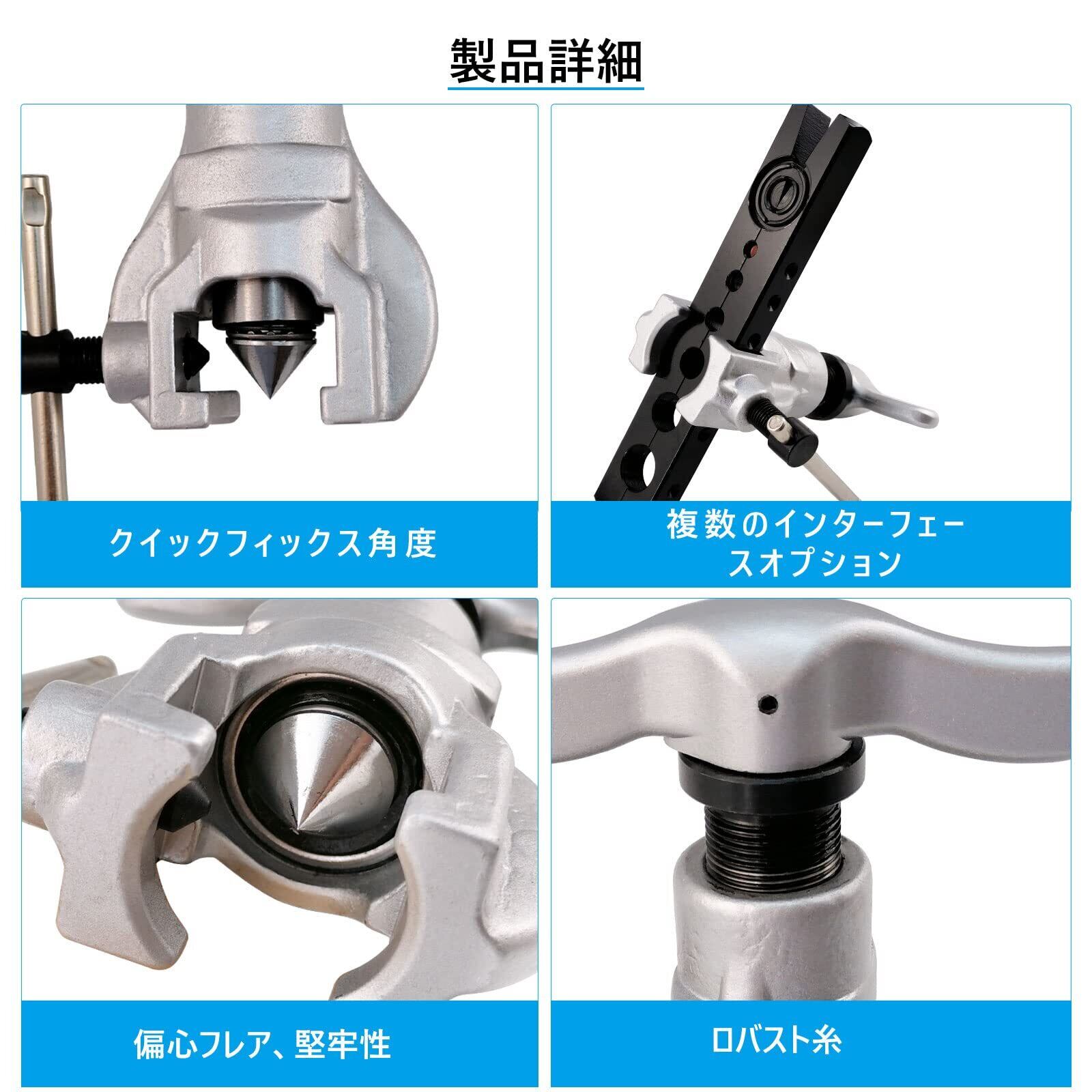 【幅広い用途】:フレアツールキットはライン、ガス、水、冷凍、ブレーキラインのアプリケーションなどのフレアリングに最適です。それは漏れのない標準的な継手に適切にフィットする良いフレアを作ります。 "