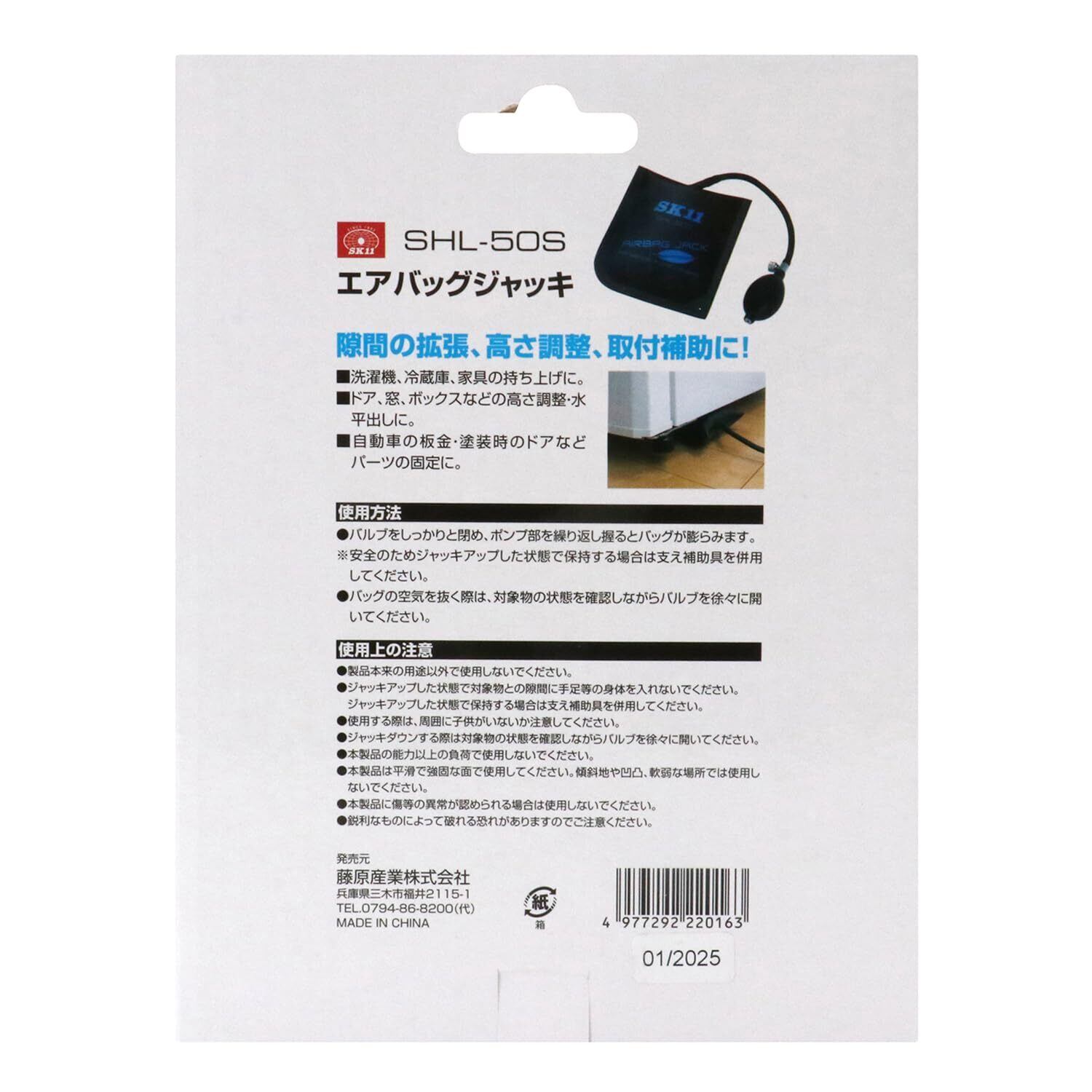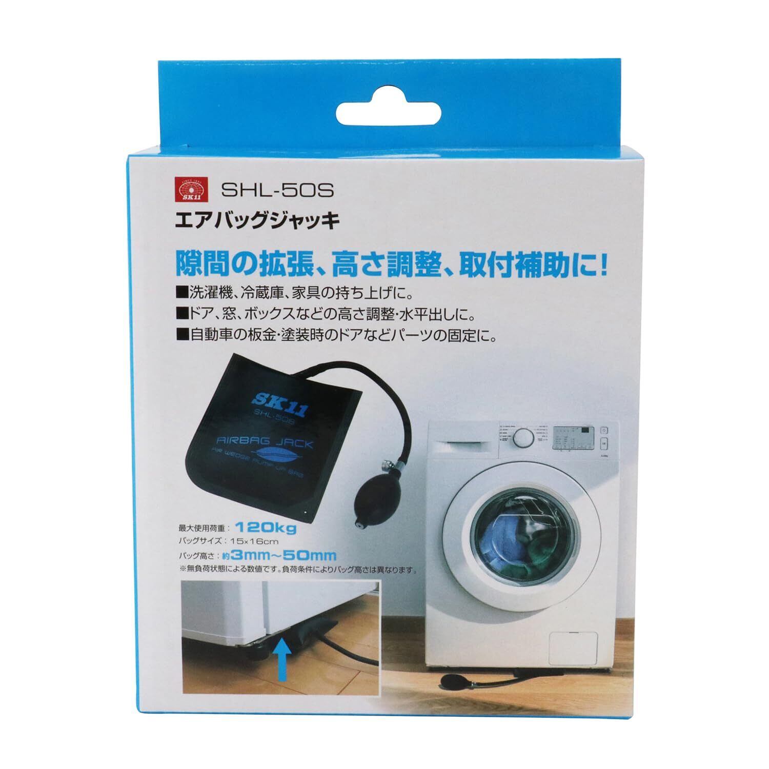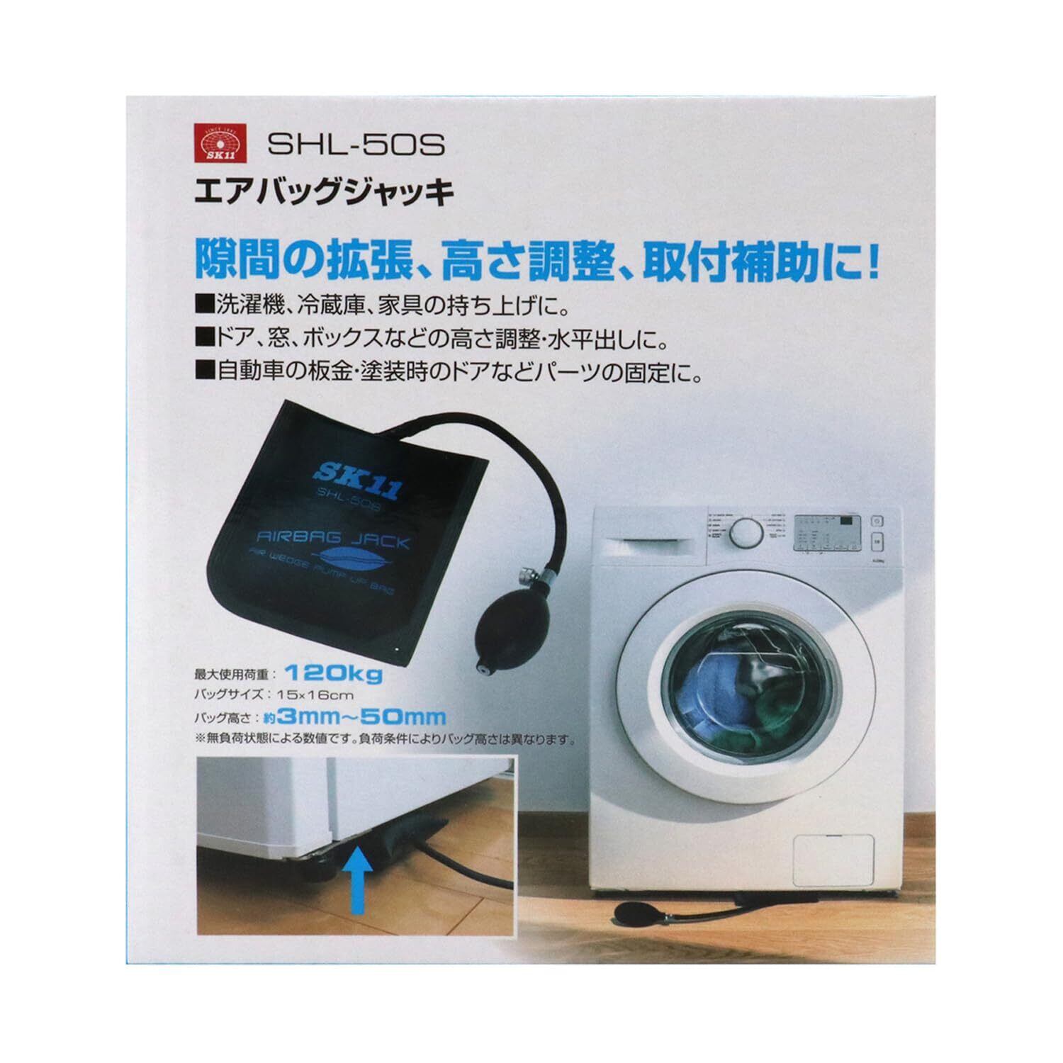 【新着商品】SK11(エスケー11) エアバッグジャッキ 耐荷重120kg バッグ高さ3~50mm バッグサイズ15×16cm 隙間の拡張・高さ調整・取付補助に SHL-50S