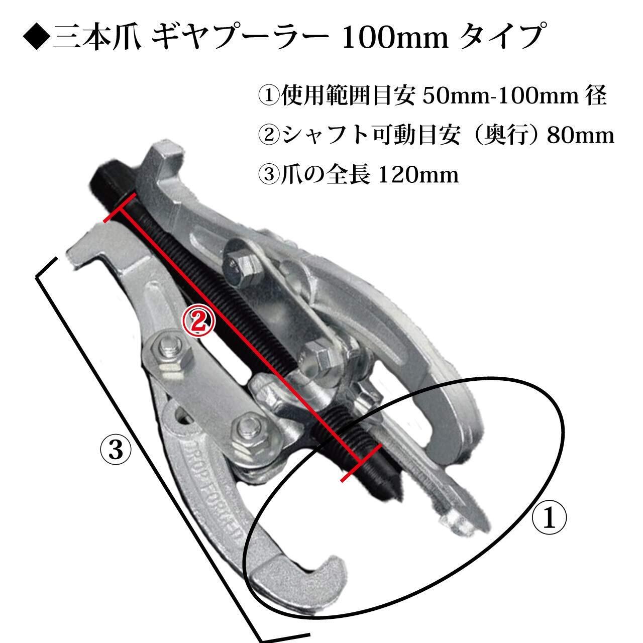 【2025最新】ギアプーラー 100mm プーリー抜き 3本爪 日本語説明書 シャフト抜き ギヤプーラー 外し フライホイールプーラー (3本爪100mm)