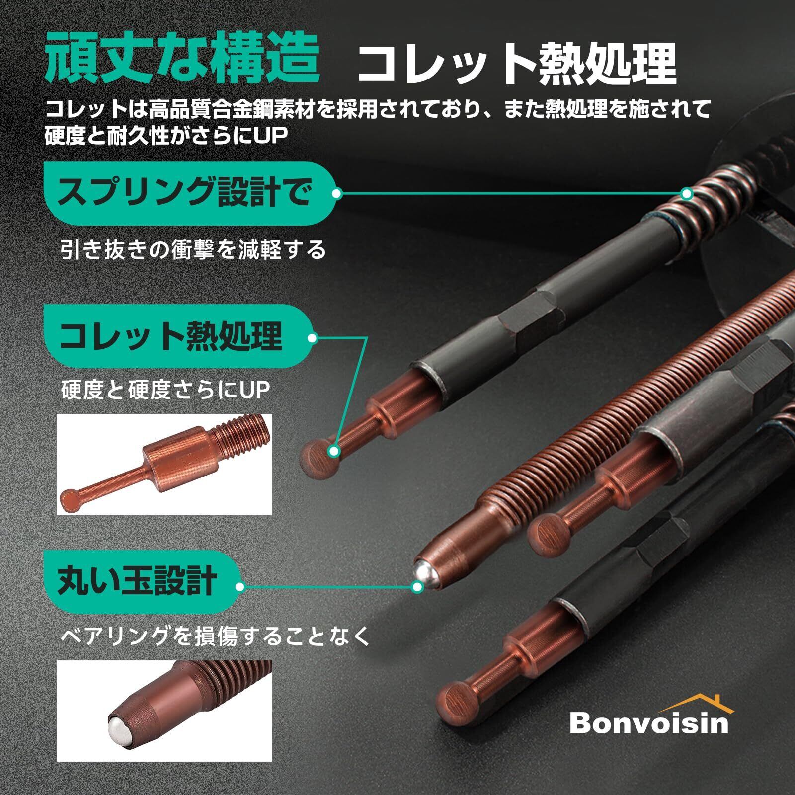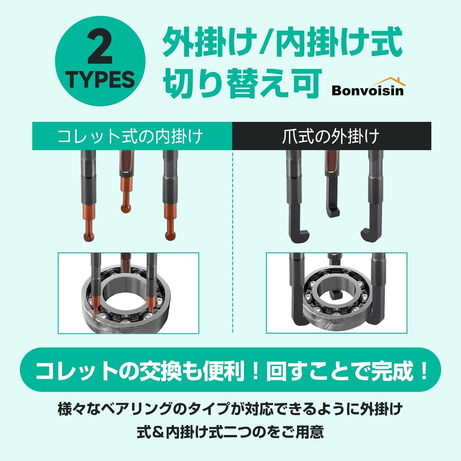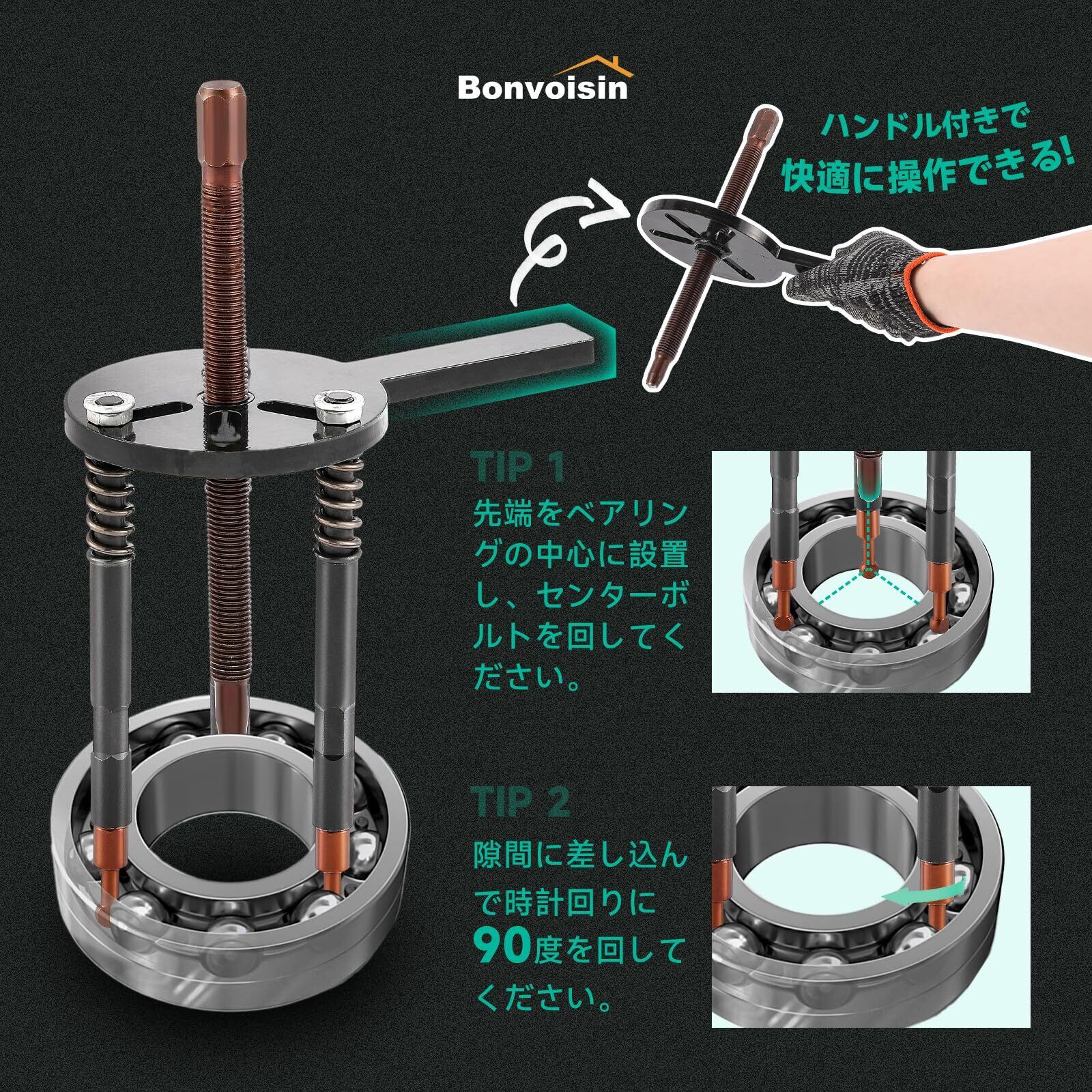 【2025最新】Bonvoisin ベアリング分解プーラー 内穴プーラー取り外し工具 プーラー ベアリング セット ベアリングプーラー ベアリング外し 取り外し 工具 3本爪付き 内掛け 自動車 整備工具 ケース付き 日本語説明書付き