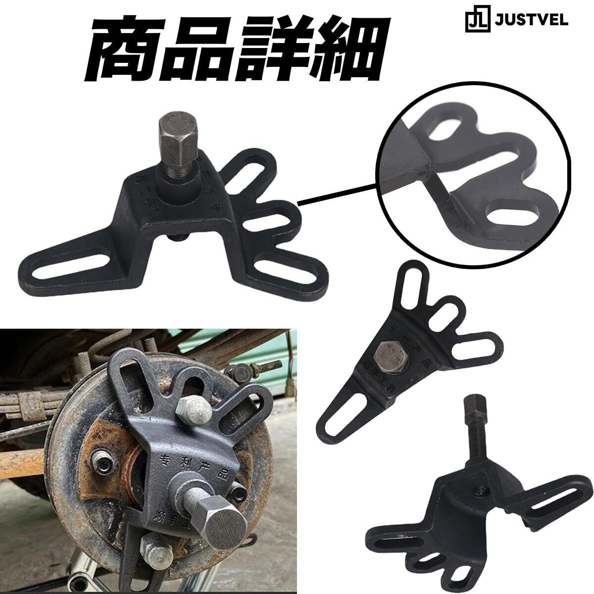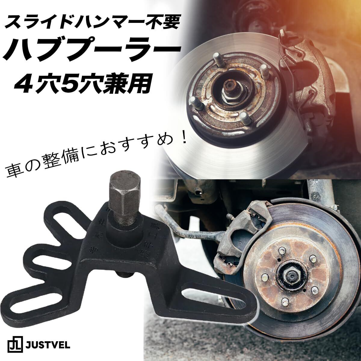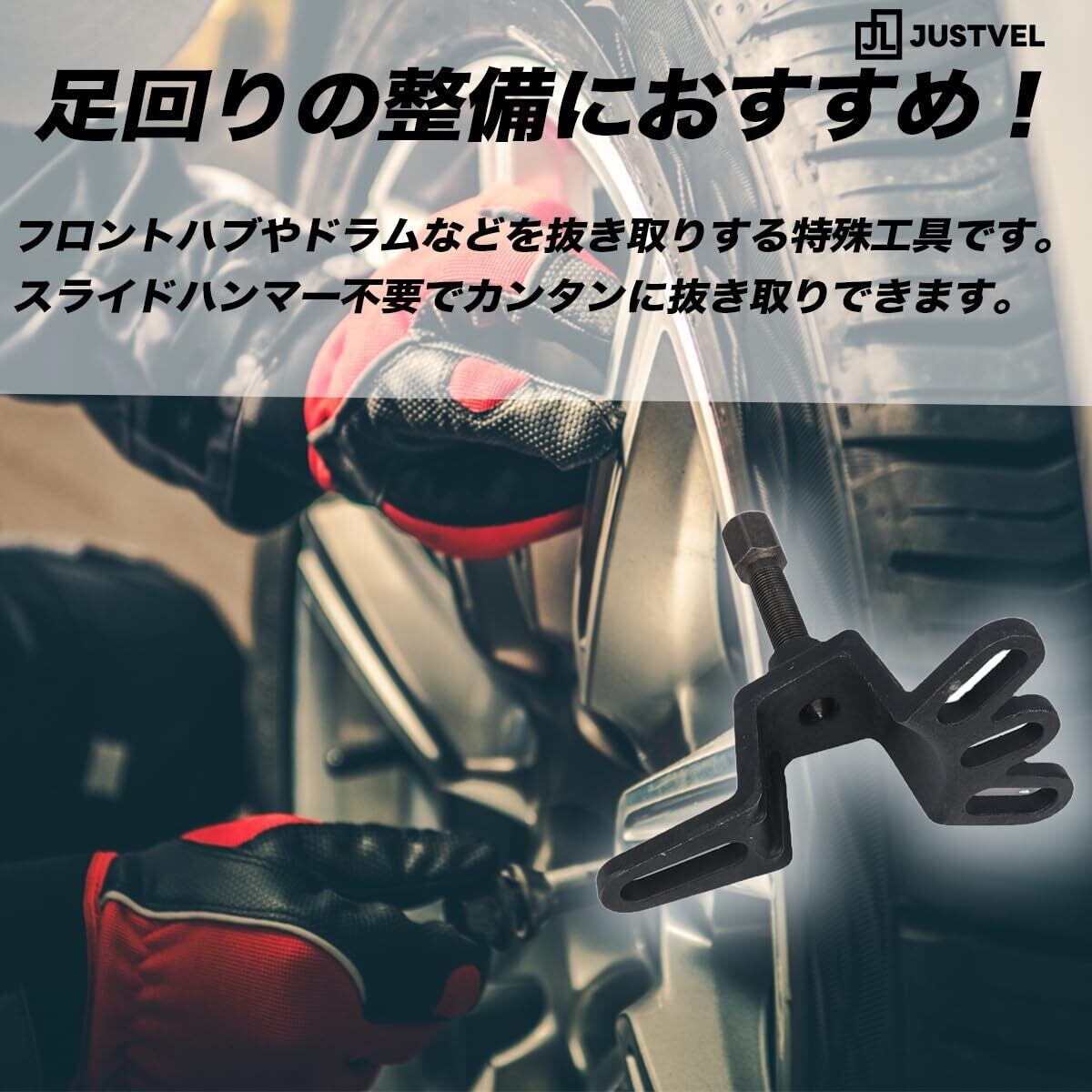 JUSTVEL ハブプーラー フロント 4穴 5穴 兼用 工具 ベアリング 交換 ドラム 抜き取り 整備 DIY スライドハンマー 不要