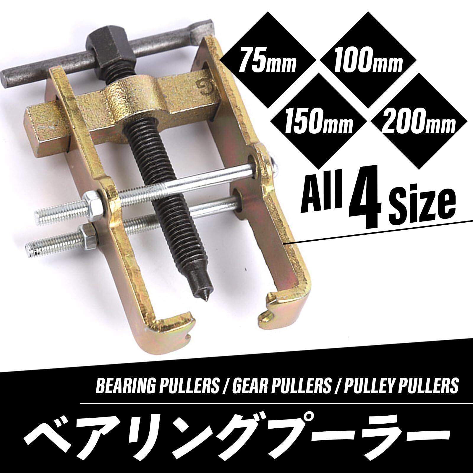 ・本製品はベアリングプーラー、ギアプーラー、プーリープーラーとして幅広く使用可能な汎用工具です。小型モーターやエンジンの整備はもちろん、ホビー用途やDIY作業にも対応しやすく、多様な状況で活躍します。サイズ展開も豊富で、作業対象に合わせて最適なプーラーを選べます。