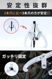 【 安定性 】 2本爪に比べて、3本爪の方がベアリング等を引っかけるときに安定しており作業性に優れています。【 商品仕様 】●「素材」炭素鋼 ●「サイズ」画像にてご確認ください ●「生産国」中国製 ●「使用範囲」0~150mm