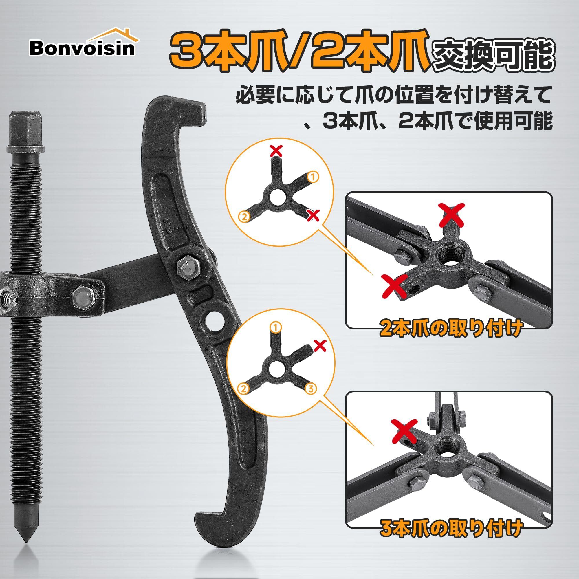 Bonvoisin ギアプーラー 2本爪/3本爪変更可能 70~200mm 高硬度 プーリ抜き ギア 外し プーラー (適用外径:200mm迄)