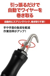 【丈夫な材質】金属部分は硬質スチールを使用しているので錆に強く、引っ張る動作に強い頼りがいのある丈夫な設計です。硬いワイヤーの取り扱いに適した素材で、長く安定した性能を発揮します。
