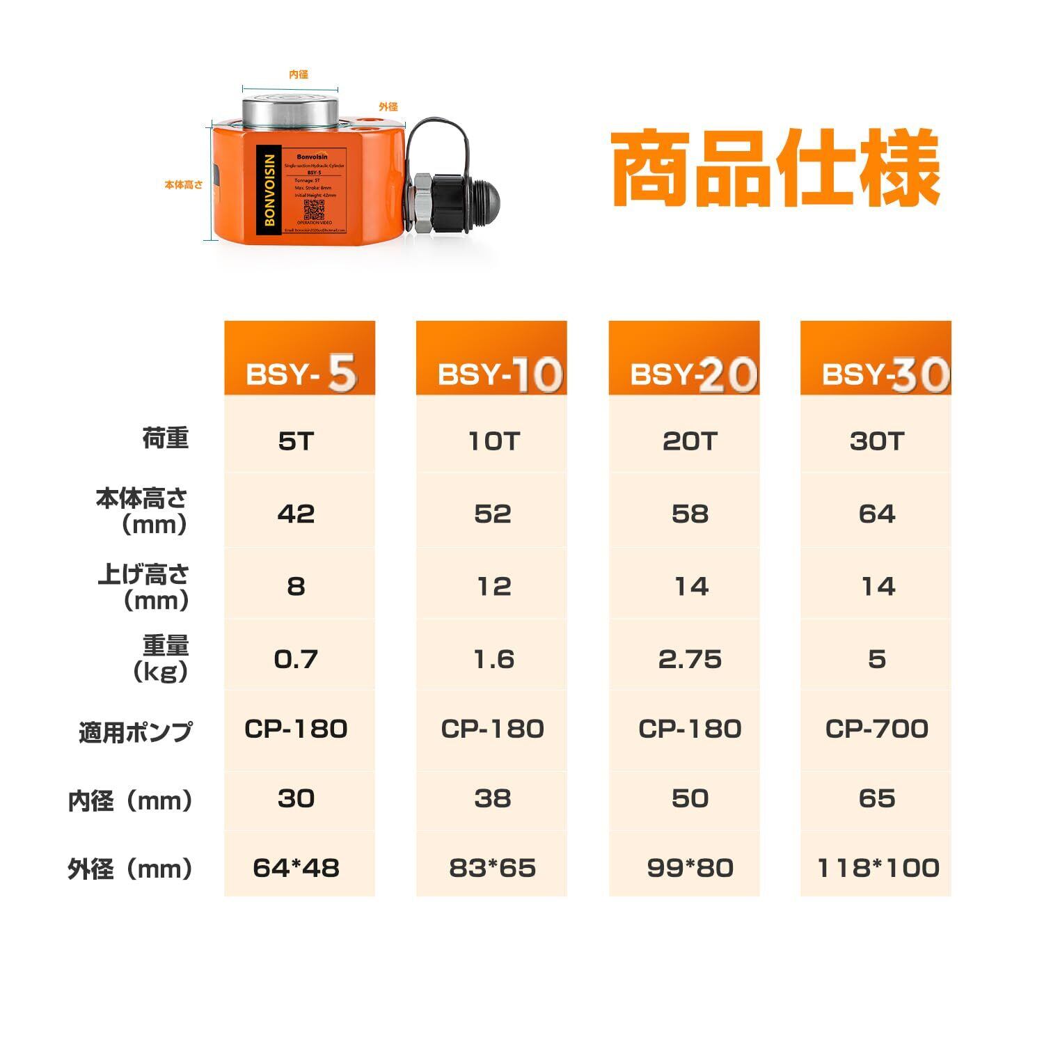 【2025最新】Bonvoisin 油圧ジャッキ ボトルジャッキ 小型 揚力5t 建築 機械 災害救援 狭い場所 日本語取扱説明書付き (5Tジャッキ+CP-180)