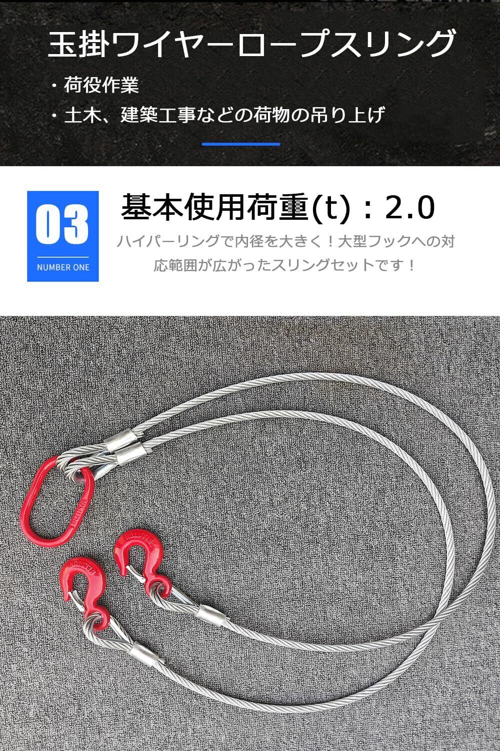 【数量限定】2本吊玉掛ワイヤーロープスリング 1.5m 2000kg 2t 吊フックリング付き 玉掛けワイヤー 吊り フックリング付き 玉掛【2leg 2.0t】