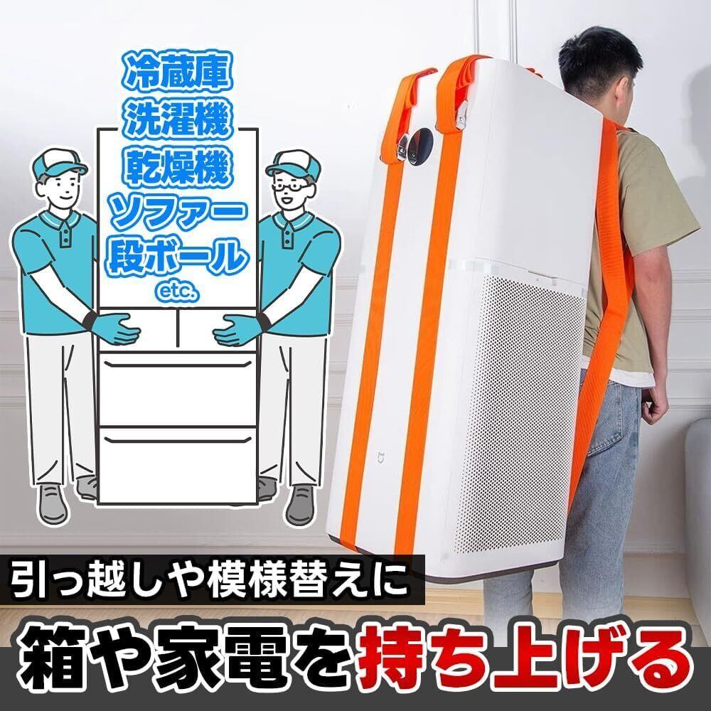 TMR.Breath G 一人用運搬ベルト 2本/左右セット 引越し 家具移動 持ち上げ 背負う ダンボール 冷蔵庫 箪笥 (オレンジ)