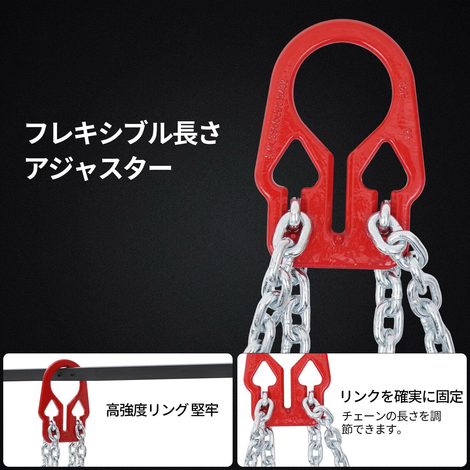 高強度なスチール素材を採用:チェーンは自在性に優れ、適切な2本吊りフックでスピーディーかつ確実な吊り荷作業が行えます