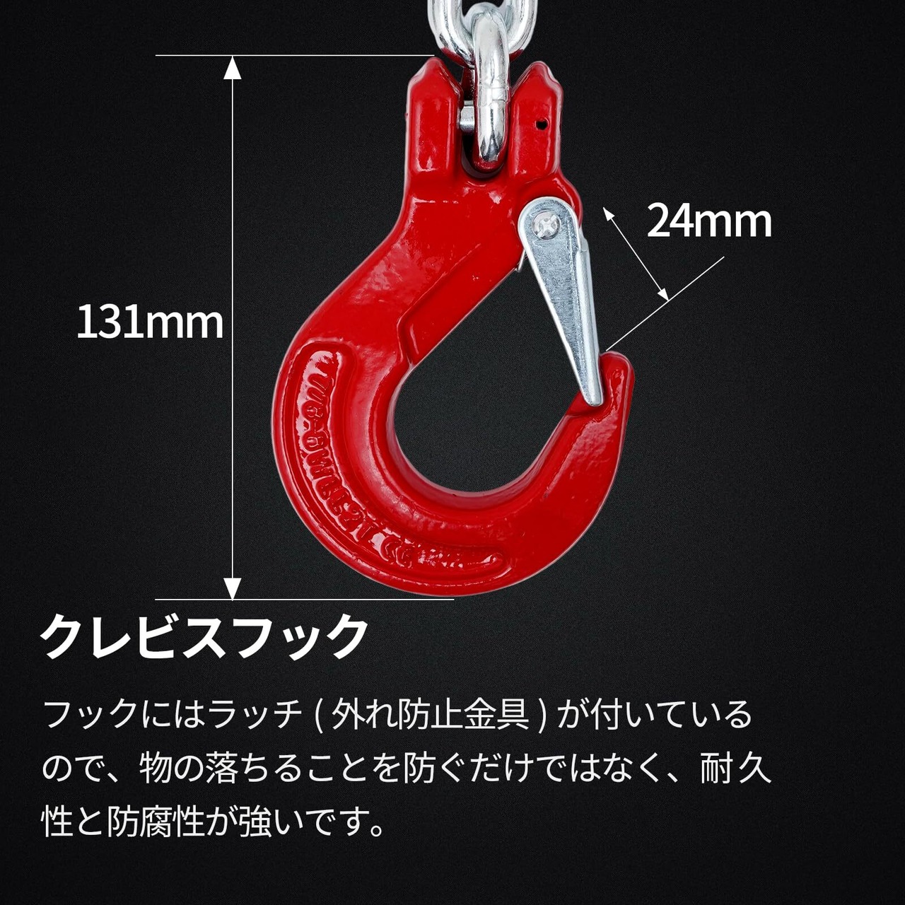 KLD チェーンスリング3.18t 3m チェーン径8mm 吊りクランプ・吊りベルト チェーンブロック スリングフック スリングフックタイプ チェーンフッカー フック付きチェー(耐荷重3.18T)