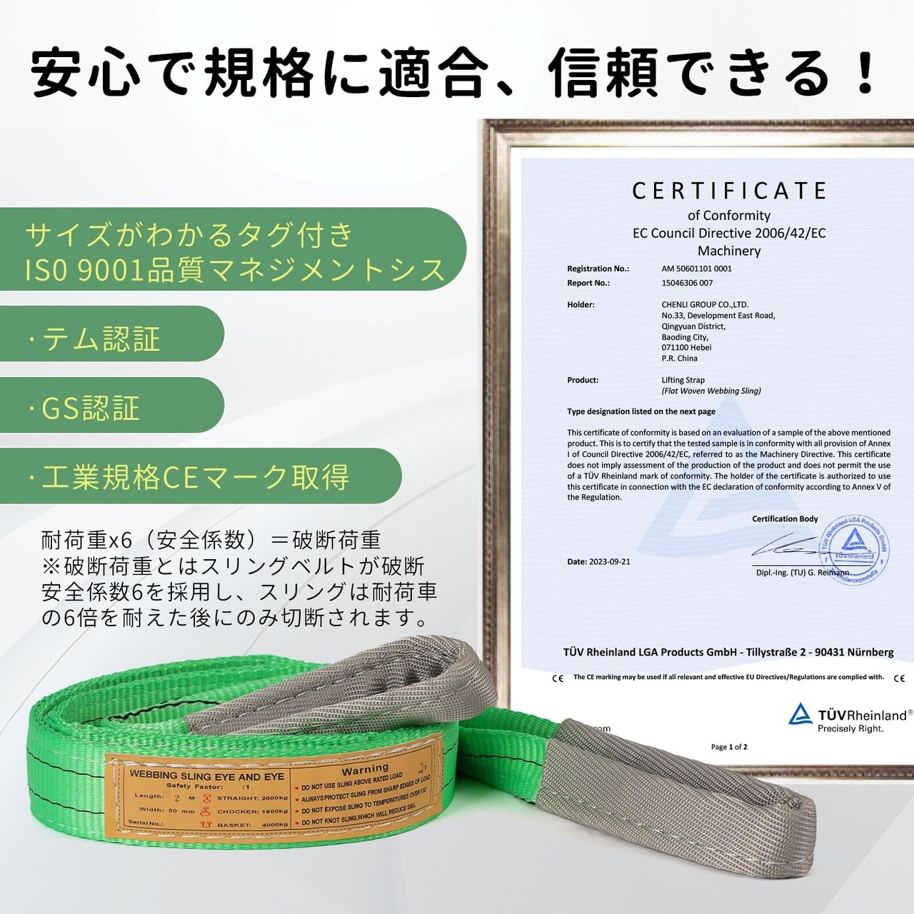 【安全性承認】製品は安全認証CEマーク、ISO 9001 認証、GS認証を取得している。引張強度、引張荷重、引張強度をテストした後、安全性がされます。