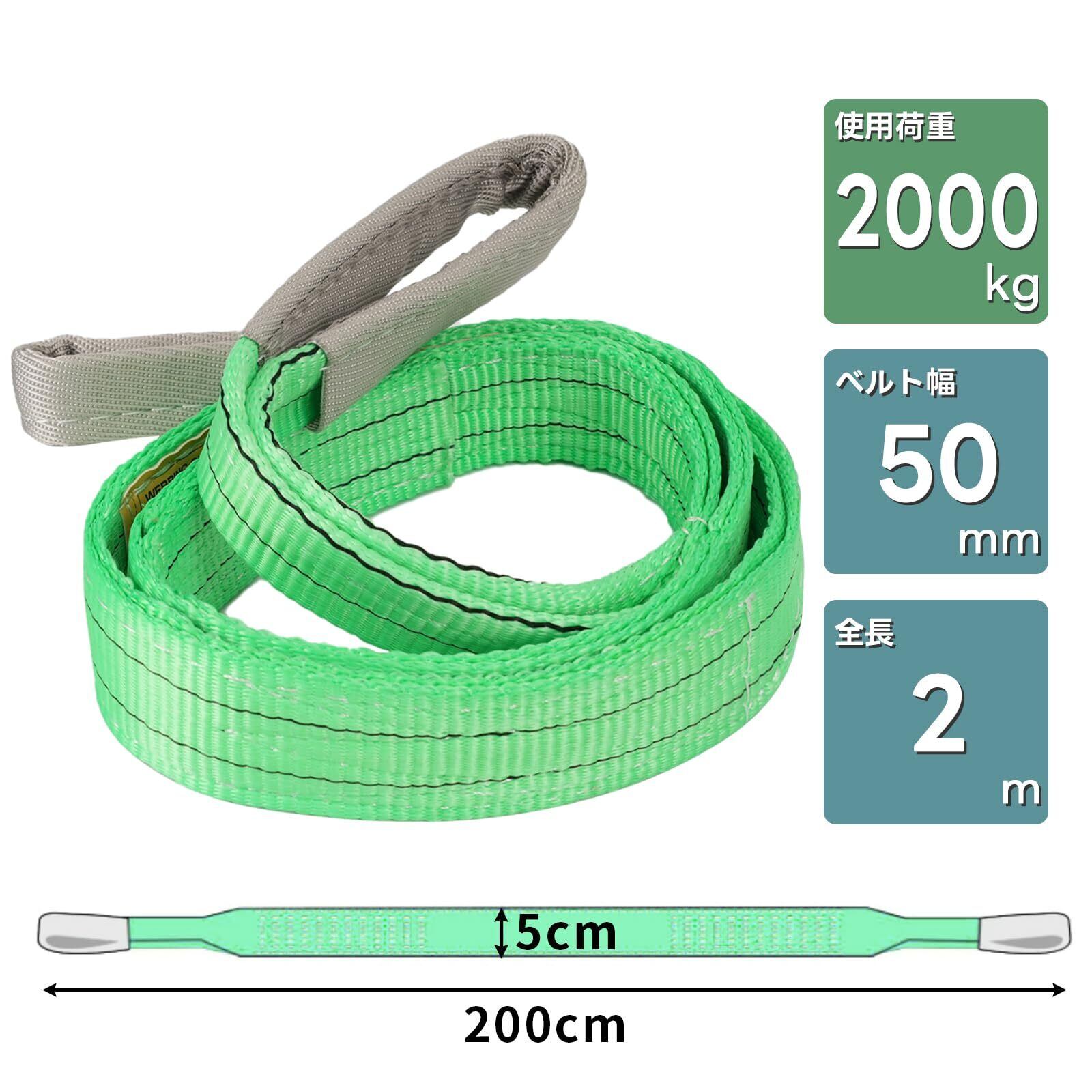 【商品仕様&最大耐荷重性】安全係数:6(最大使用荷重×6=破断荷重)最大使用荷重:2000kg (ストレート吊の場合)長さ2M×幅50MM、スリングベルト(両端アイ型) 使用荷重素材:ポリエステル繊維、2本セット。大半の吊り作業に対応可能です、業務効率が大幅に向上します。