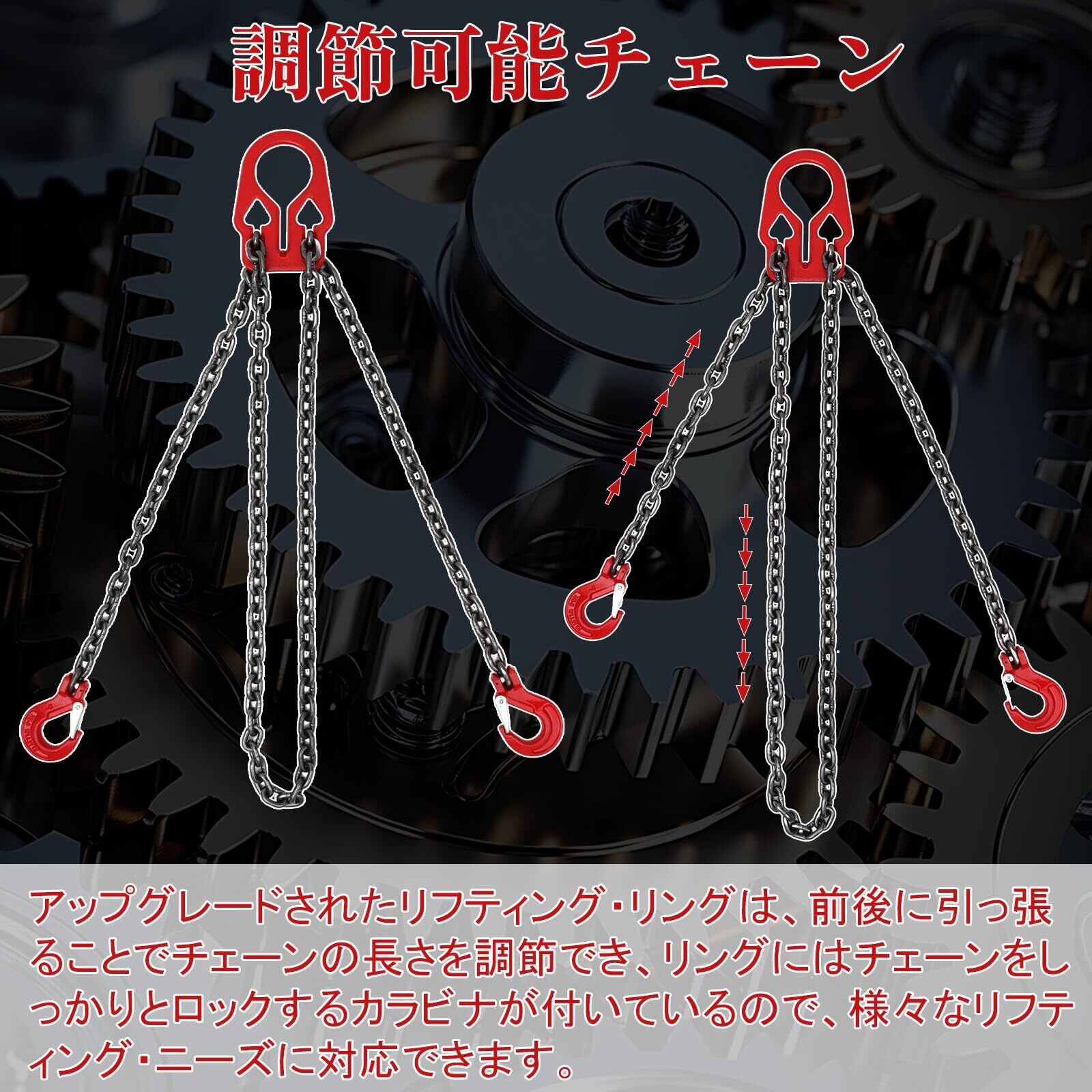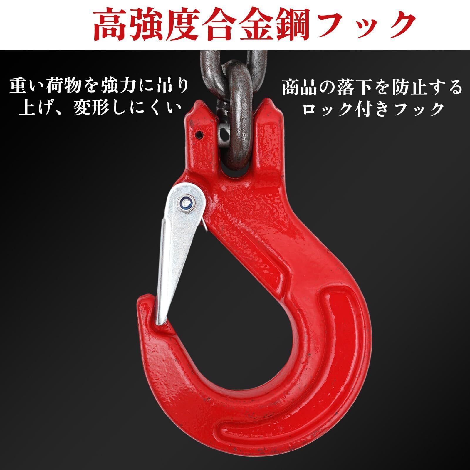 高品質のチェーン素材: チェーンはG80グレードのマンガン鋼材で作られており、丈夫で長寿命です。 錆を防止するために、チェーンに表面オイル処理を施しましたので、商品を受け取る時、作業手袋を使用してチェーンに触れることをお勧めします