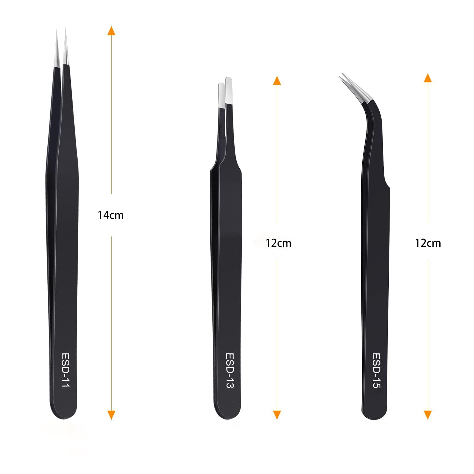 ピンセット[ESD-13]:直型、刃先丸い型、部品への損害を回避できます (120mm/4.7in)。