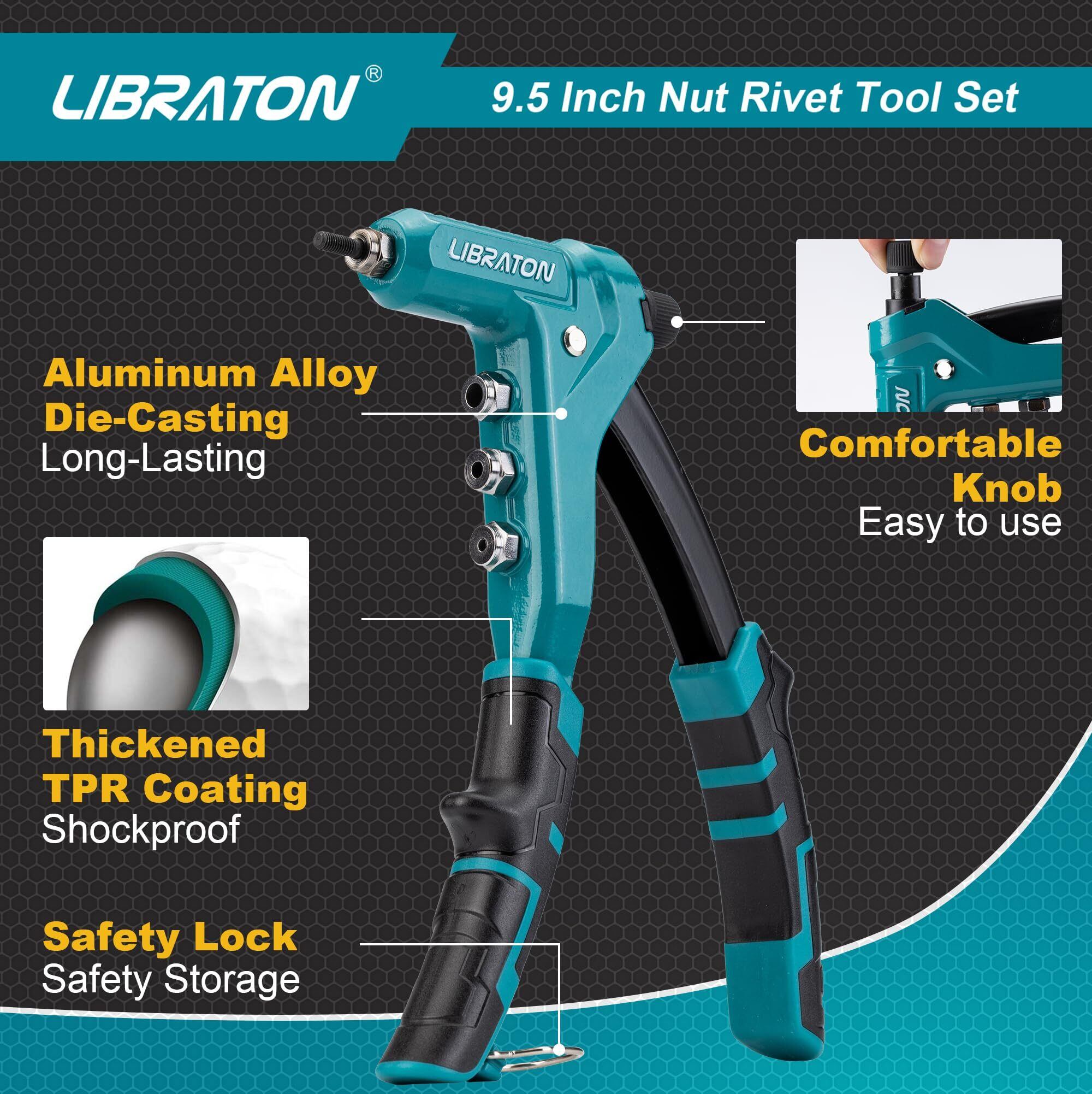 LIBRATON ハンドナッターセット M3 M4 M5 M6 ブラインドナット40個付き 収納ケース付き