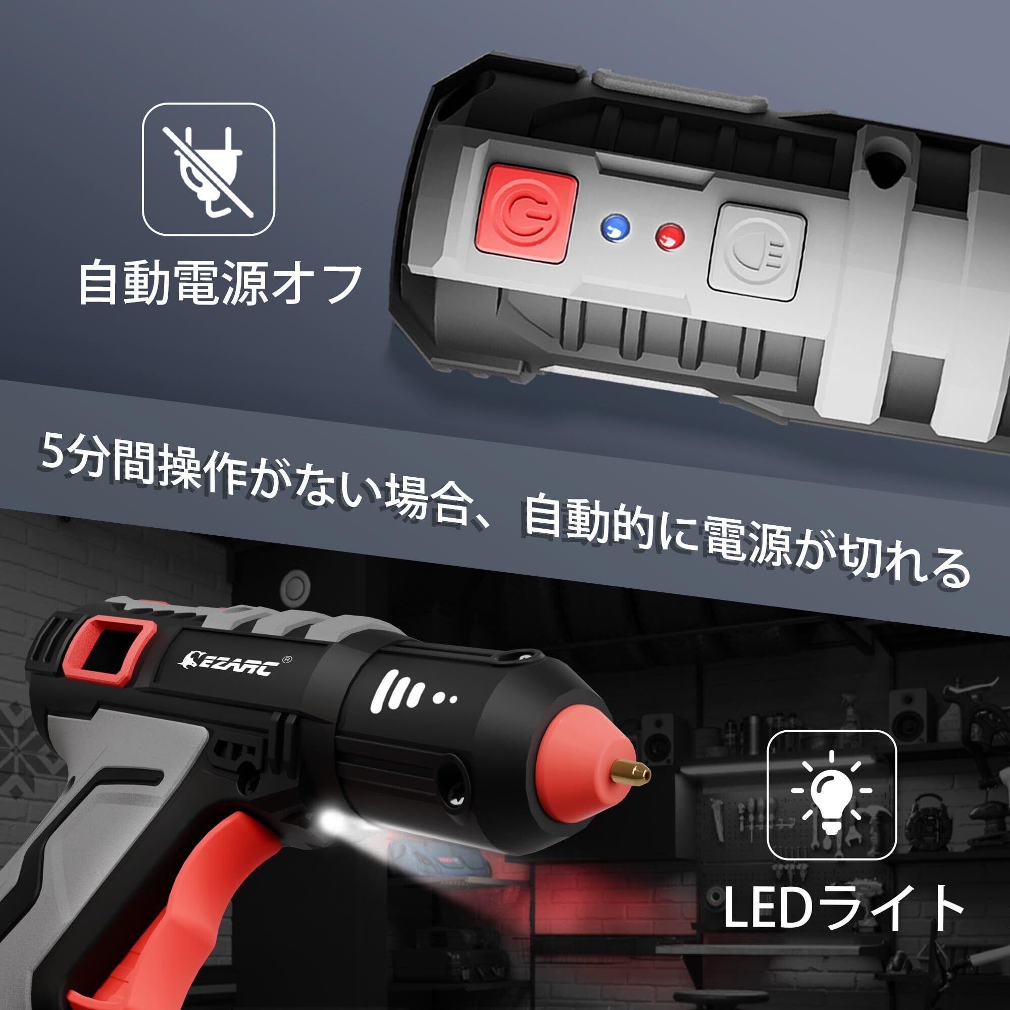 【特価セール】EZARC グルーガンコードレスグルーガン充電式 ボンドガン TYPE-C 15秒急速加熱 スティック30本付 断電保護機能 液漏れ防止 強力粘着補修 DIY手芸 家庭用 補修用