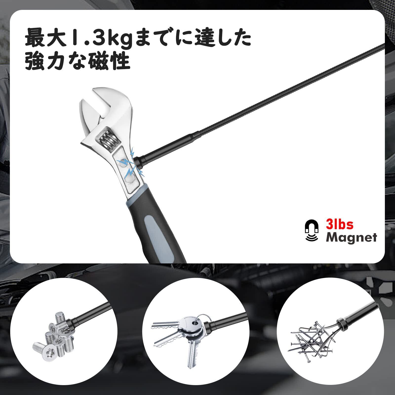 【2025最新】ピックアップツール Housolution マグネットピックアップ 72cm LEDライト先端に内蔵 鉄製 ピックアップ工具 マグネット4本爪 磁性爪 曲がれる ボタン電池式 マジックハンド フレキシブル 隙間 拾うツール 狭い所 トイレ トラック 車 Black