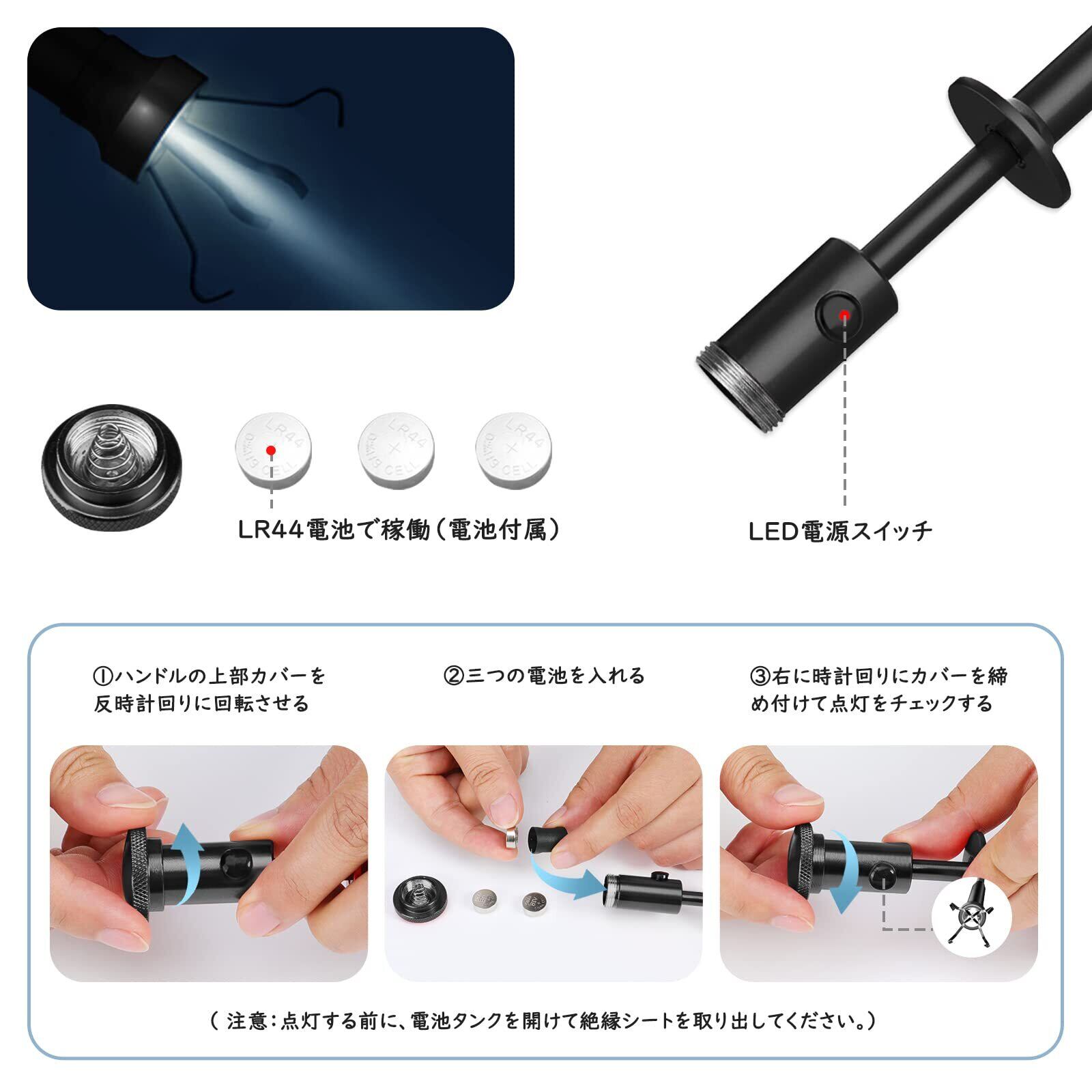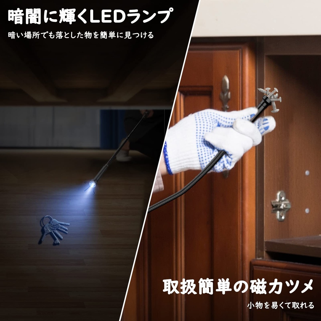 「取り扱い簡単」:やすい操作方法:まず、落とす場所に差し込み、爪を動かせ、LEDランプによって暗い場所を照らし、小物やコインなどの物を取り出します。折り畳み式のデザインで、持ち運びや保管に便利です。