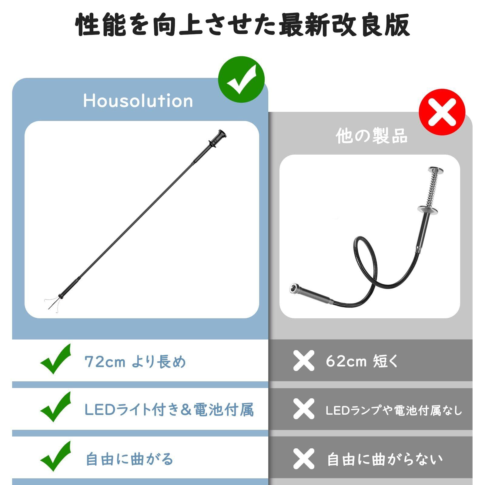 ピックアップツール Housolution マグネットピックアップ 72cm LEDライト先端に内蔵 鉄製 ピックアップ工具 マグネット4本爪 磁性爪 曲がれる ボタン電池式 マジックハンド フレキシブル 隙間 拾うツール 狭い所 トイレ トラック 車 Black