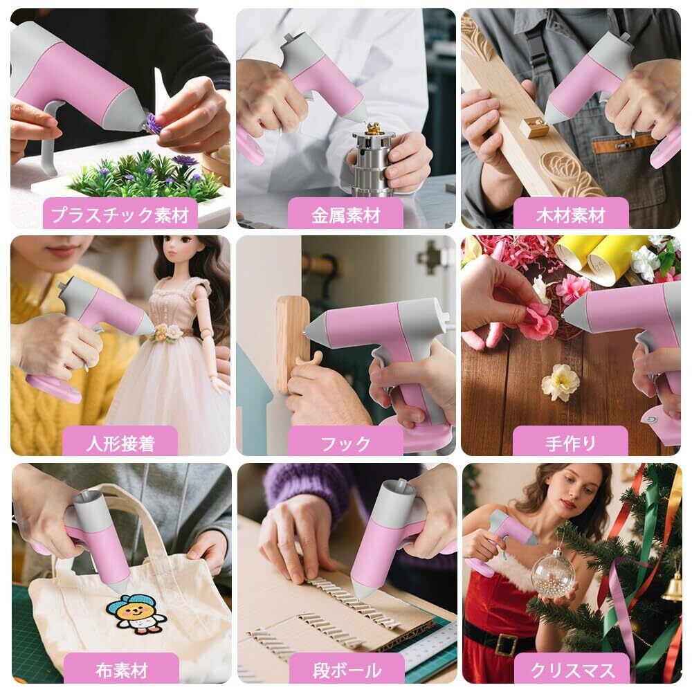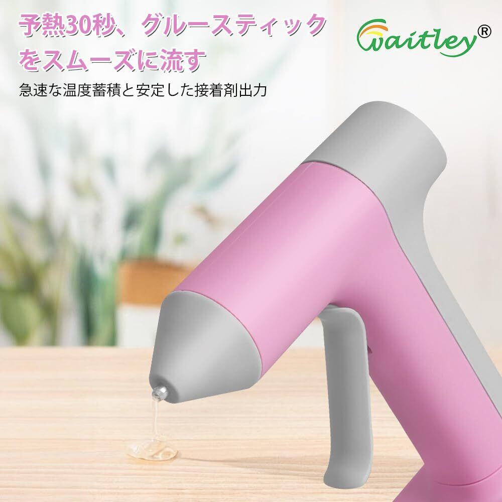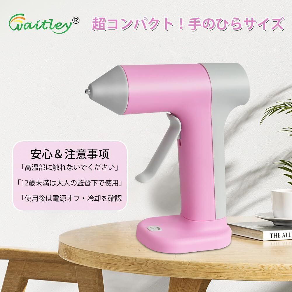 【在庫限り】zingelyコードレスグルーガン 急速加熱 30秒予熱 小型軽量 自動電源オフ Waitley充電式2000mAhバッテリー付き DIY 手芸 家庭用 補修用 クラフト用 グルースティック20本付き7mm(Type-C充電対応)
