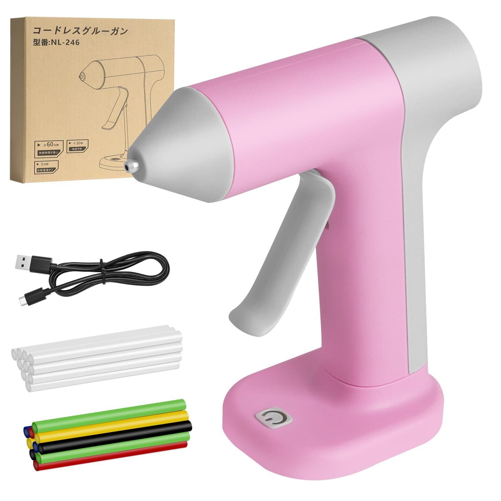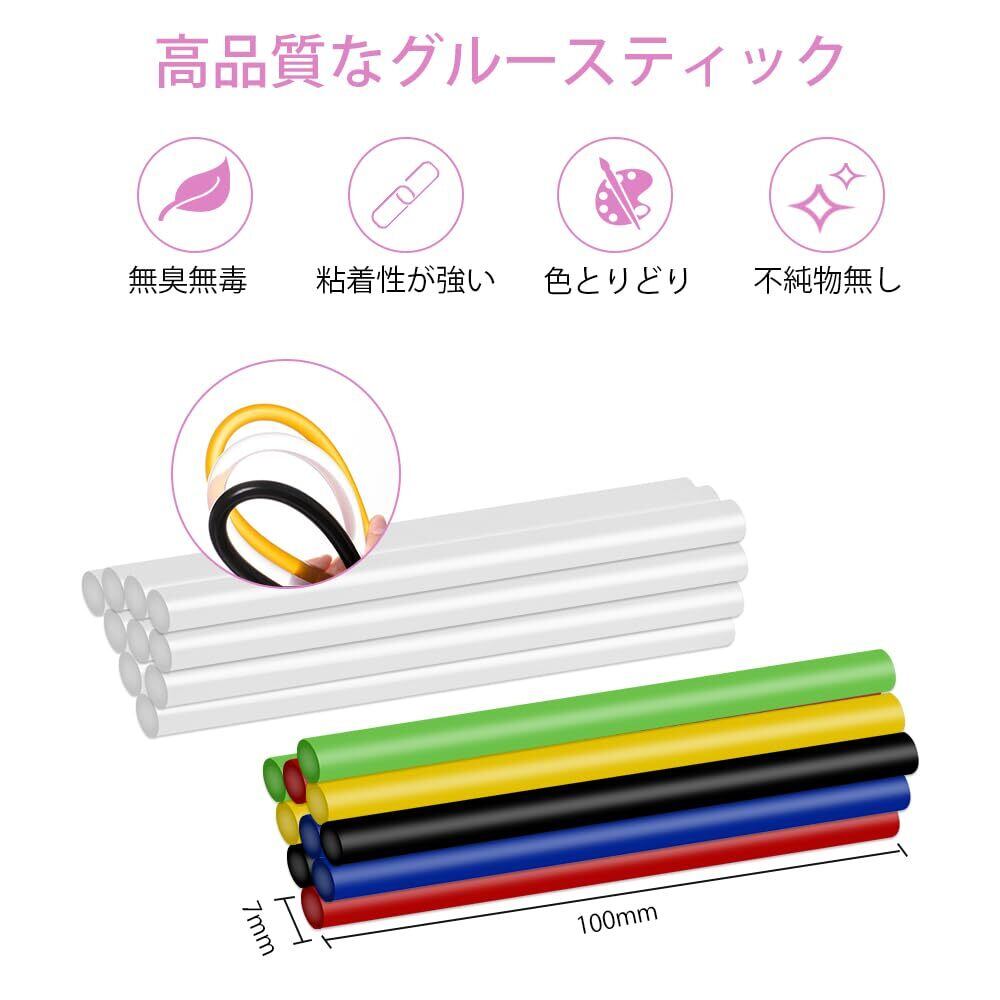【すぐに使える充実セット】 本体に加え、カラフルなグルースティック20本(クリア・黒・赤・黄・白など)とType-C充電ケーブル付き。届いたその日からすぐに使えます。