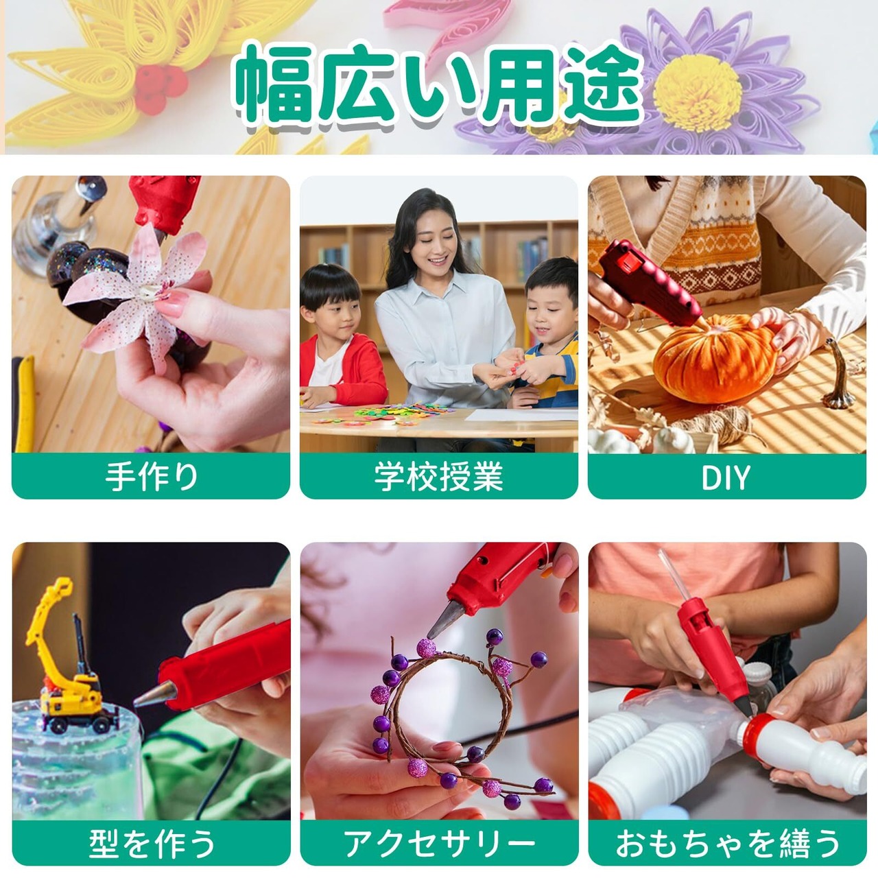【幅広い適用性】手作り工房、学校、家庭のDIY活動にオススメ。木材、紙、段ボール、金属、テキスタイル、コルク、ガラス、各種プラスチックの接着や固定など最適しています。