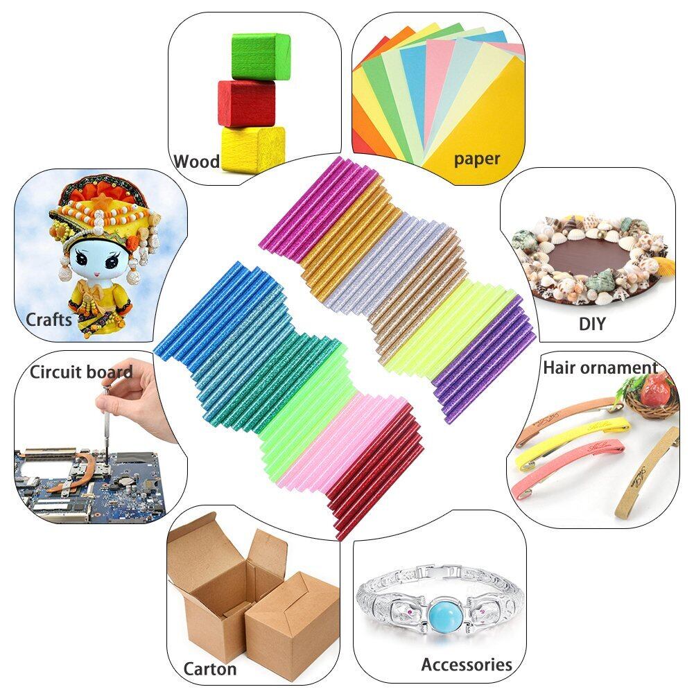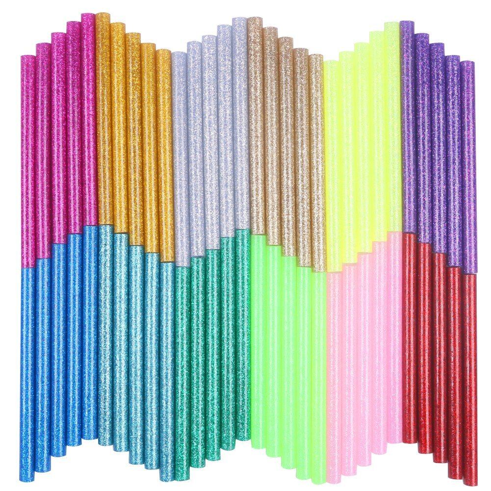 Enviner ホットメルト接着スティック 12色 ホットグルーガンスティック カラー接着剤 DIY クラフトスティックツールのため グルースティック 高温ボンドガン用 マルチカラー 強力粘着 ピタガン替え用 接着剤 20-30wミニグルーガン 7mm×100mm 60本入