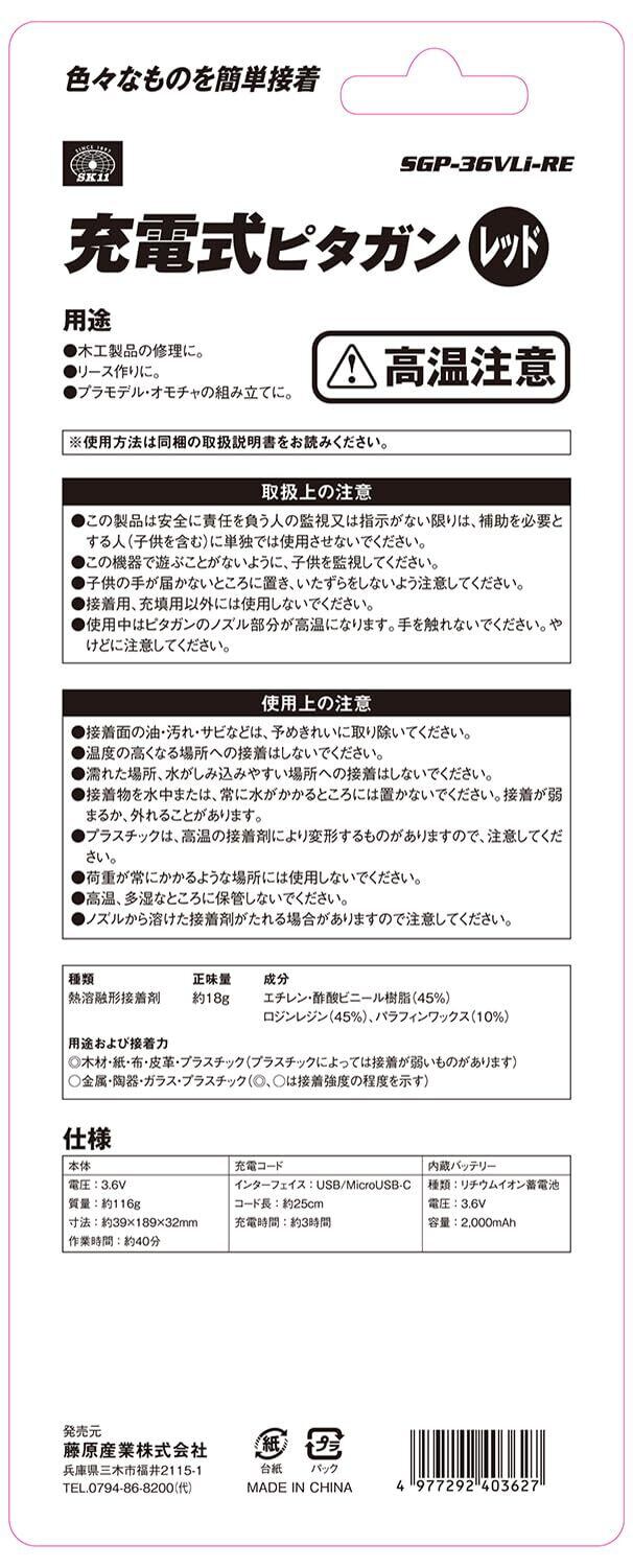 SK11(エスケー11) 3.6V充電式ピタガン レッド SGP-36VLi-RE バッテリー容量2000mAh 充電時間約3時間で約40分の作業が可能