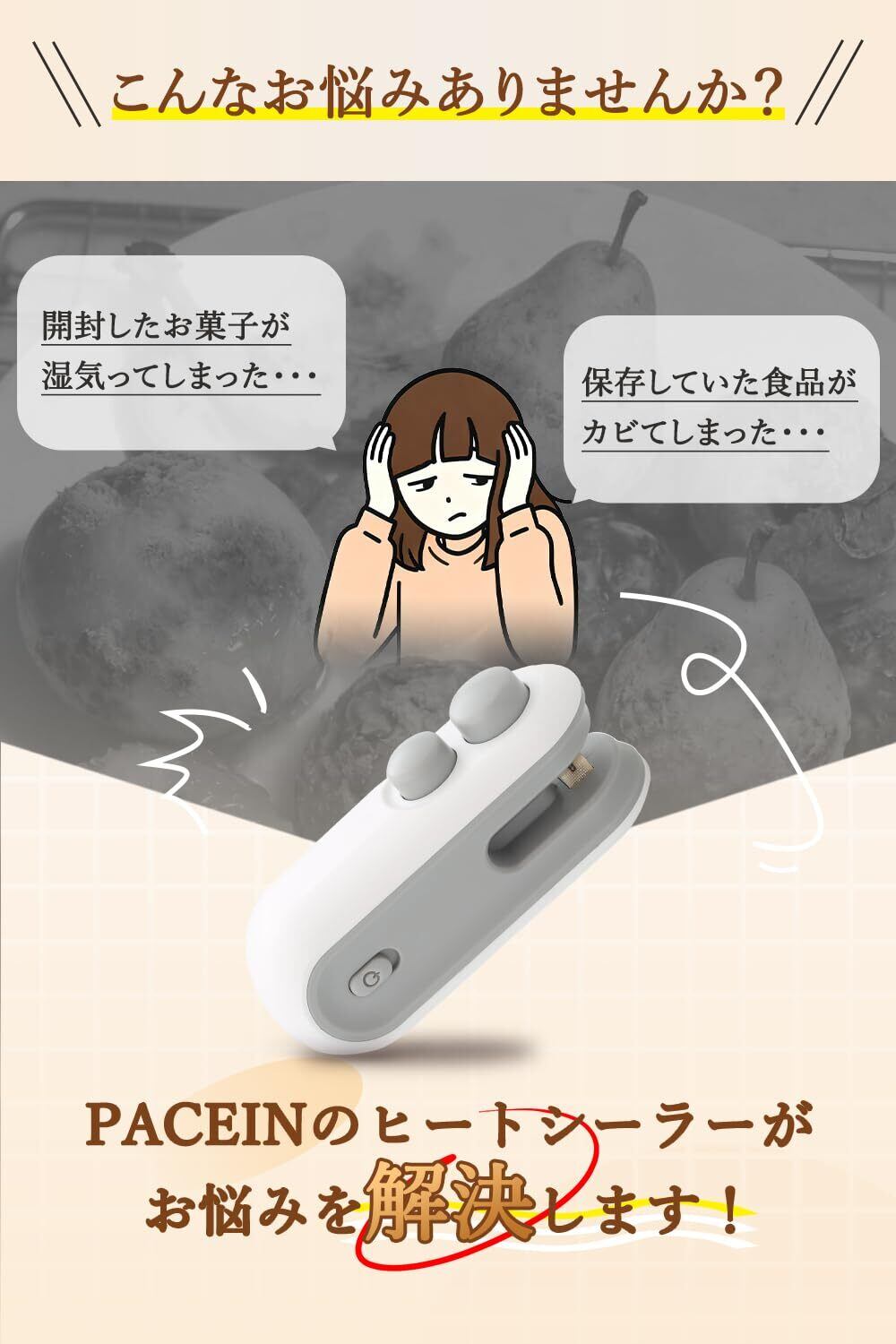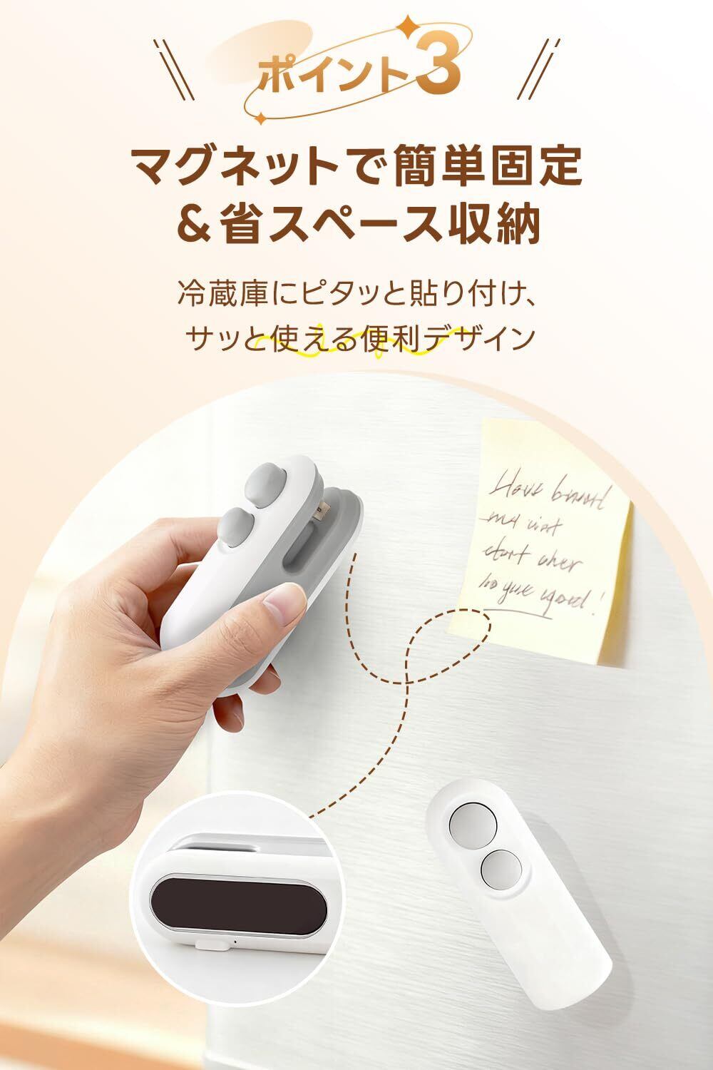 PACEIN ヒートシーラー シーラー家庭用 シーラーハンディ ハンディシーラー 小型 ホットシーラー イージーシーラー USB 充電式ヒートシーラー 密封機 カッター マグネット バッグヒートシール お菓子 袋 保存密封 ポータブル キッチン 旅行用