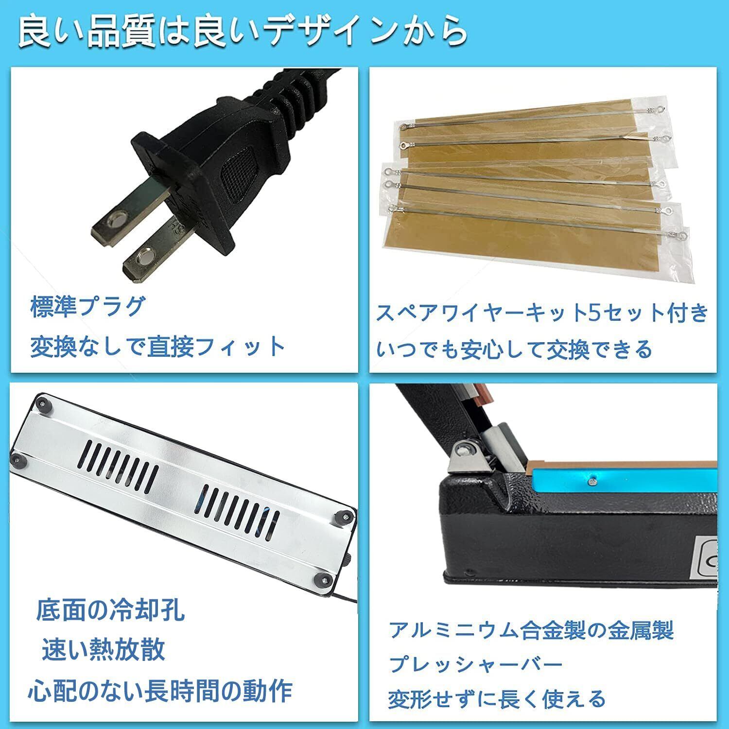 【シール幅3MM、予備電熱線5本】シール幅を通常の2MMより広い3MMに拡大し、袋をよりしっかりと、より強く、より密閉することができます。 同時に5セットの予備電熱線を配布します。長期間使用する場合は、使用時間に応じて交換できます,新しい電熱線を交換すると、シール度が向上します。