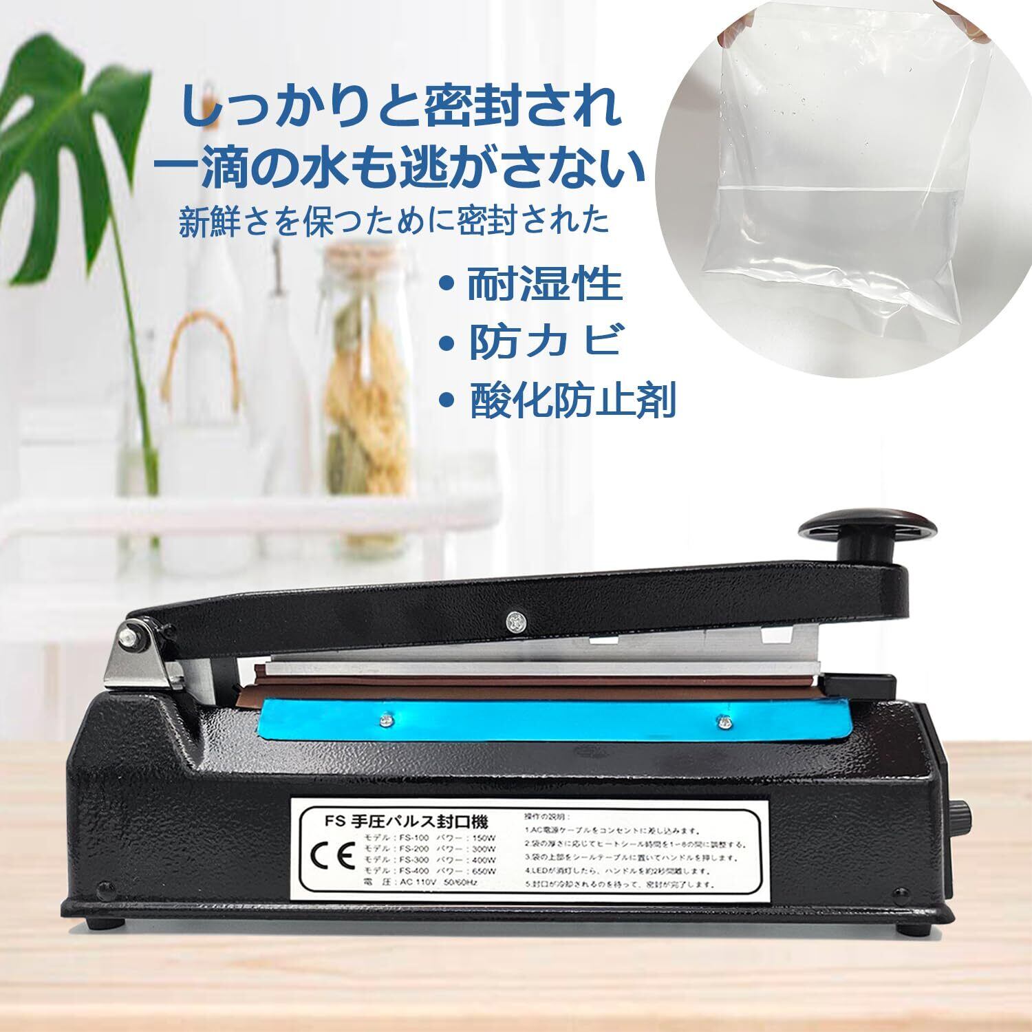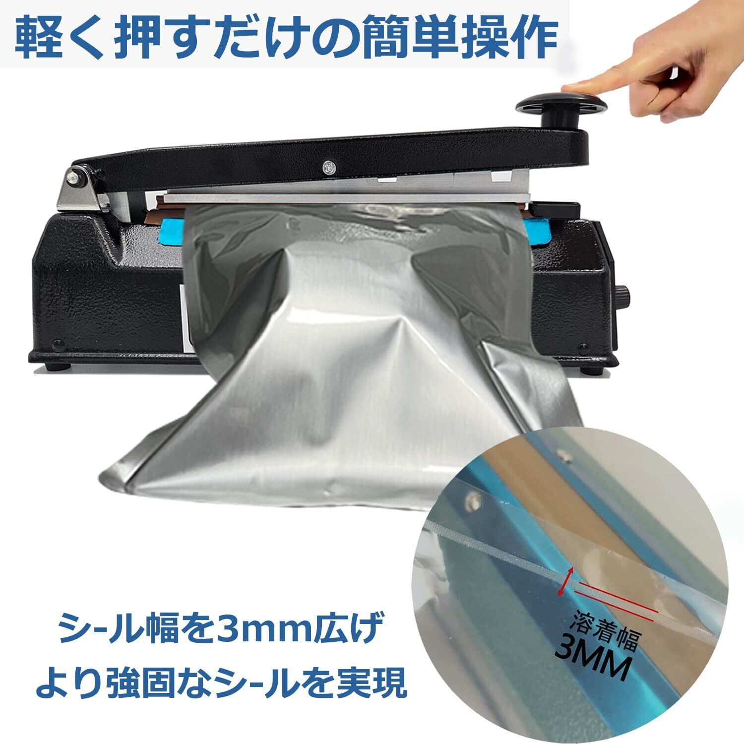 シーラー 卓上 【黑 20CM長 シール幅3MM】 ヒートシーラー インパルス シーラー シーラー 業務用 家庭用 8ランク調整 シーラー日本語取扱説明書付き