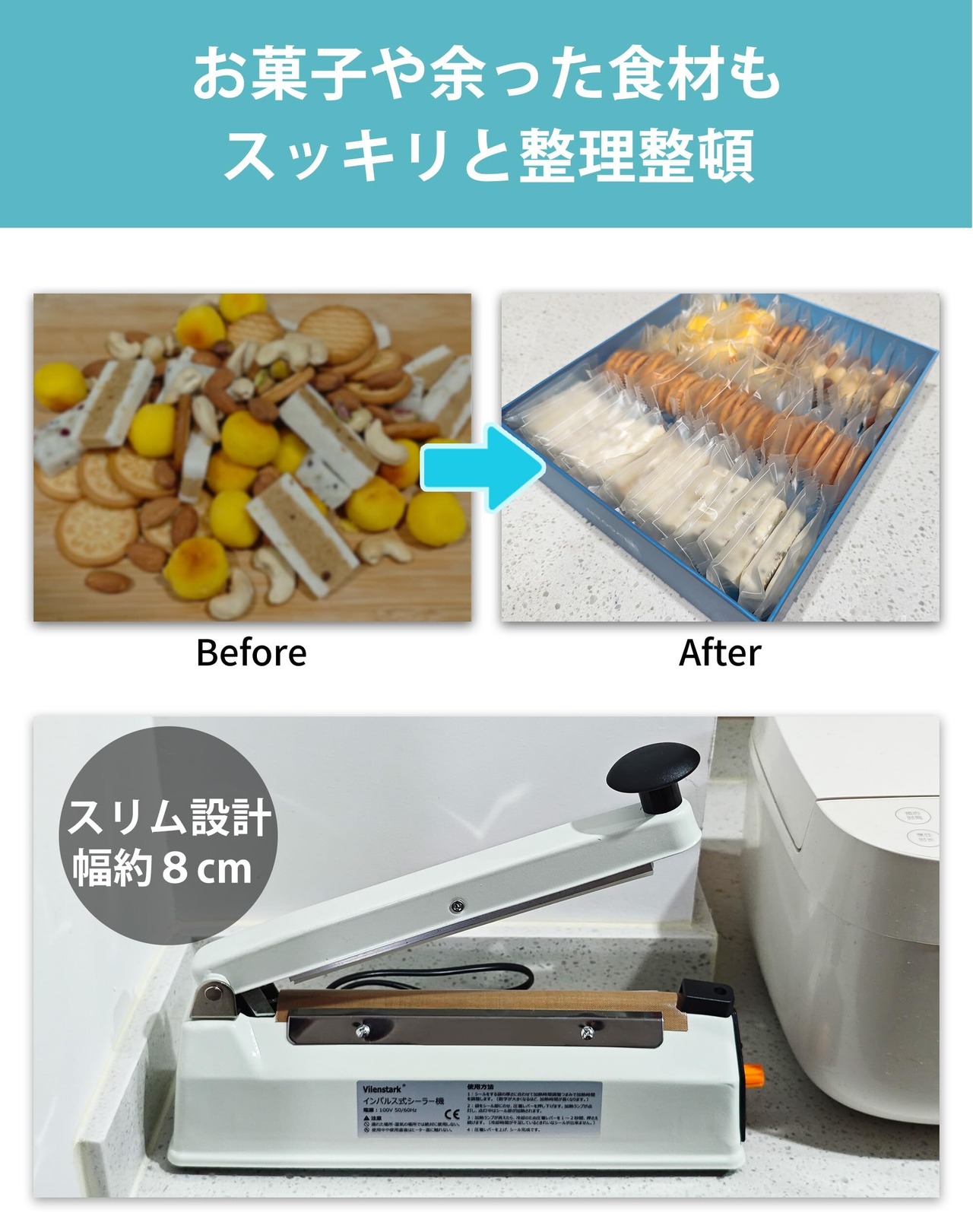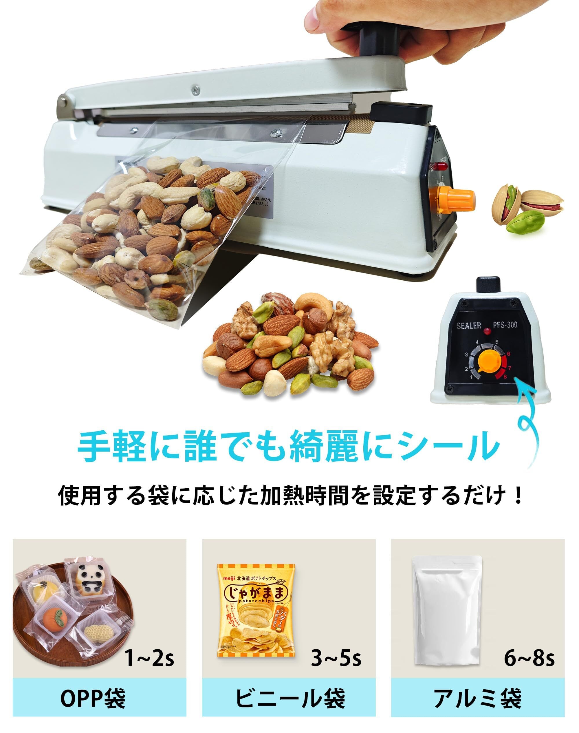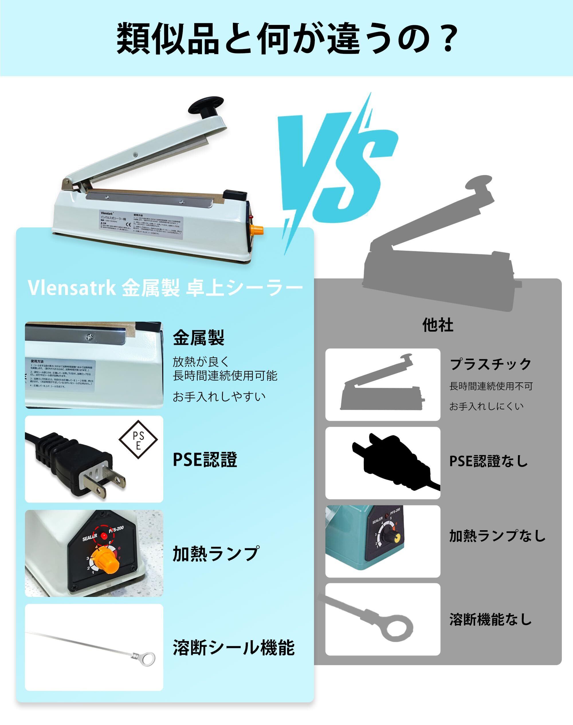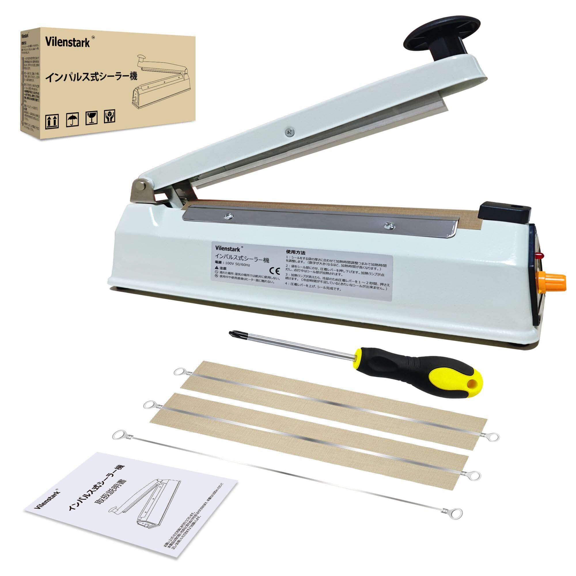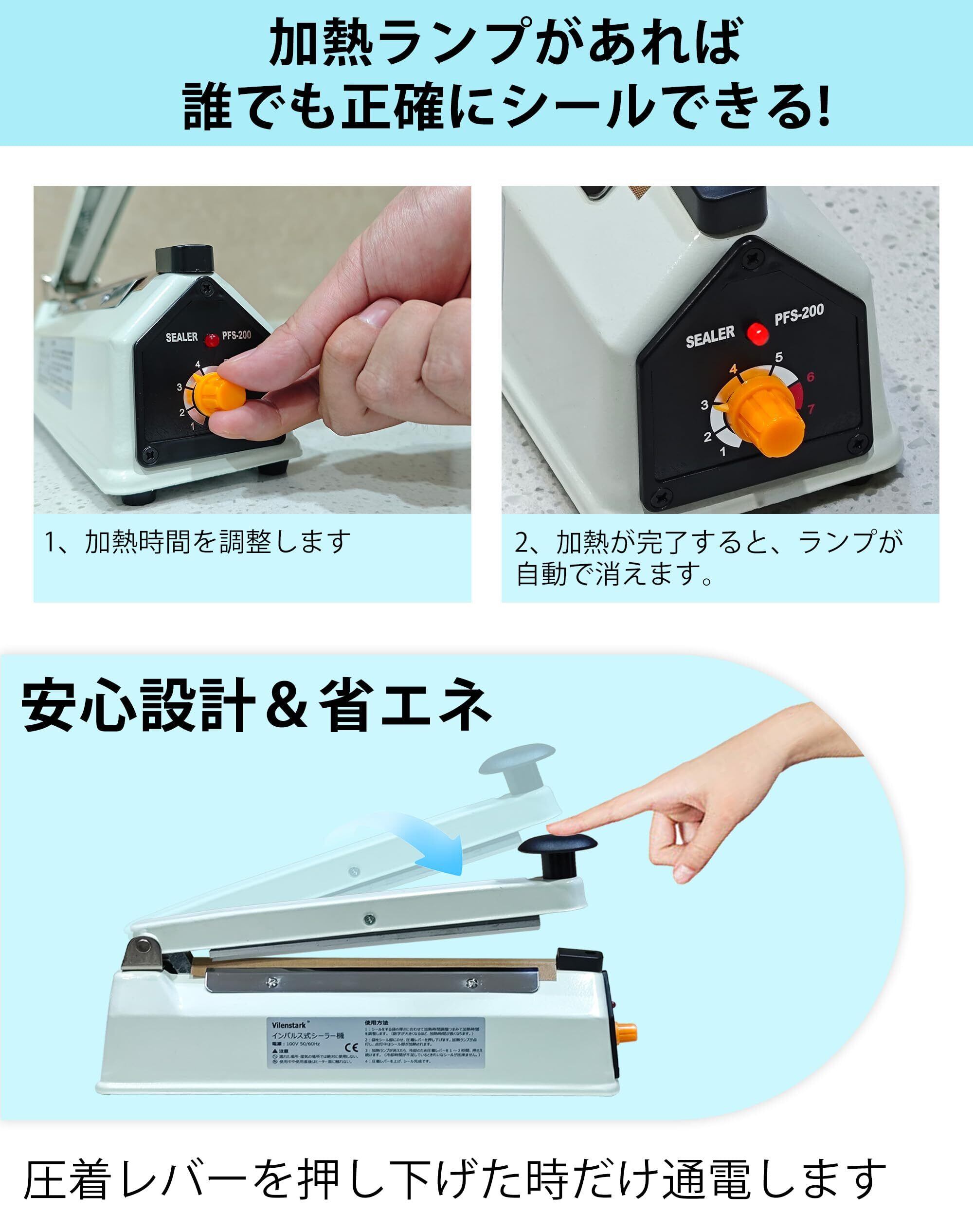 卓上シーラー 200mm 家庭 業務用 金属製 瞬時溶着 省エネ インパルス式 日本語取扱説明書
