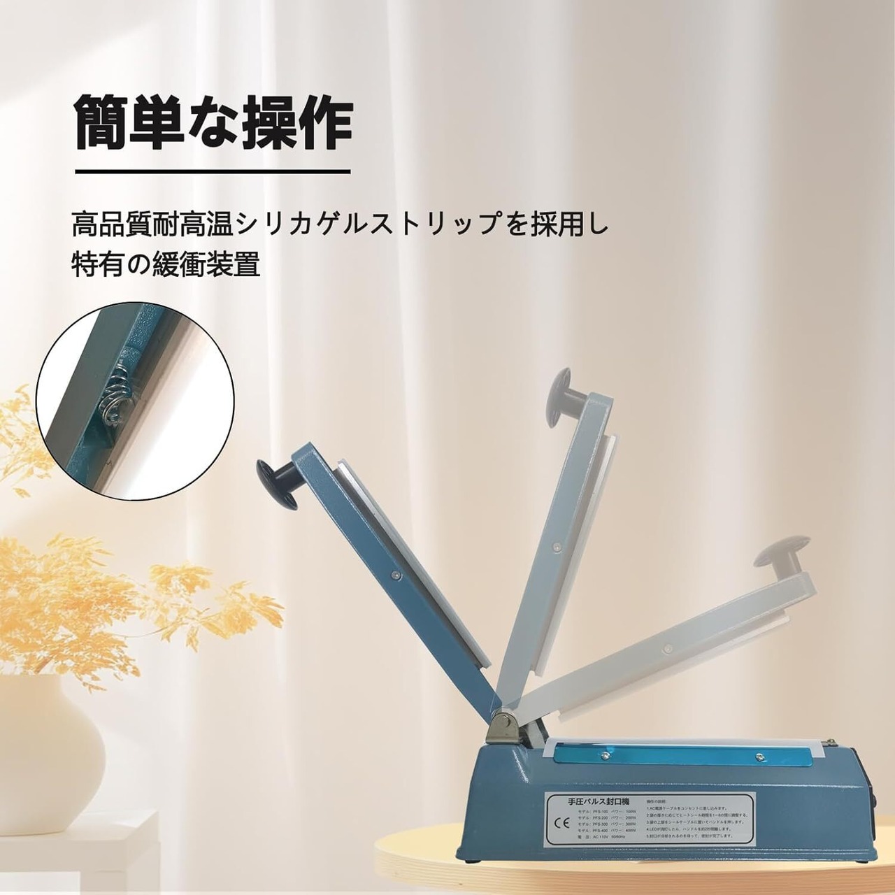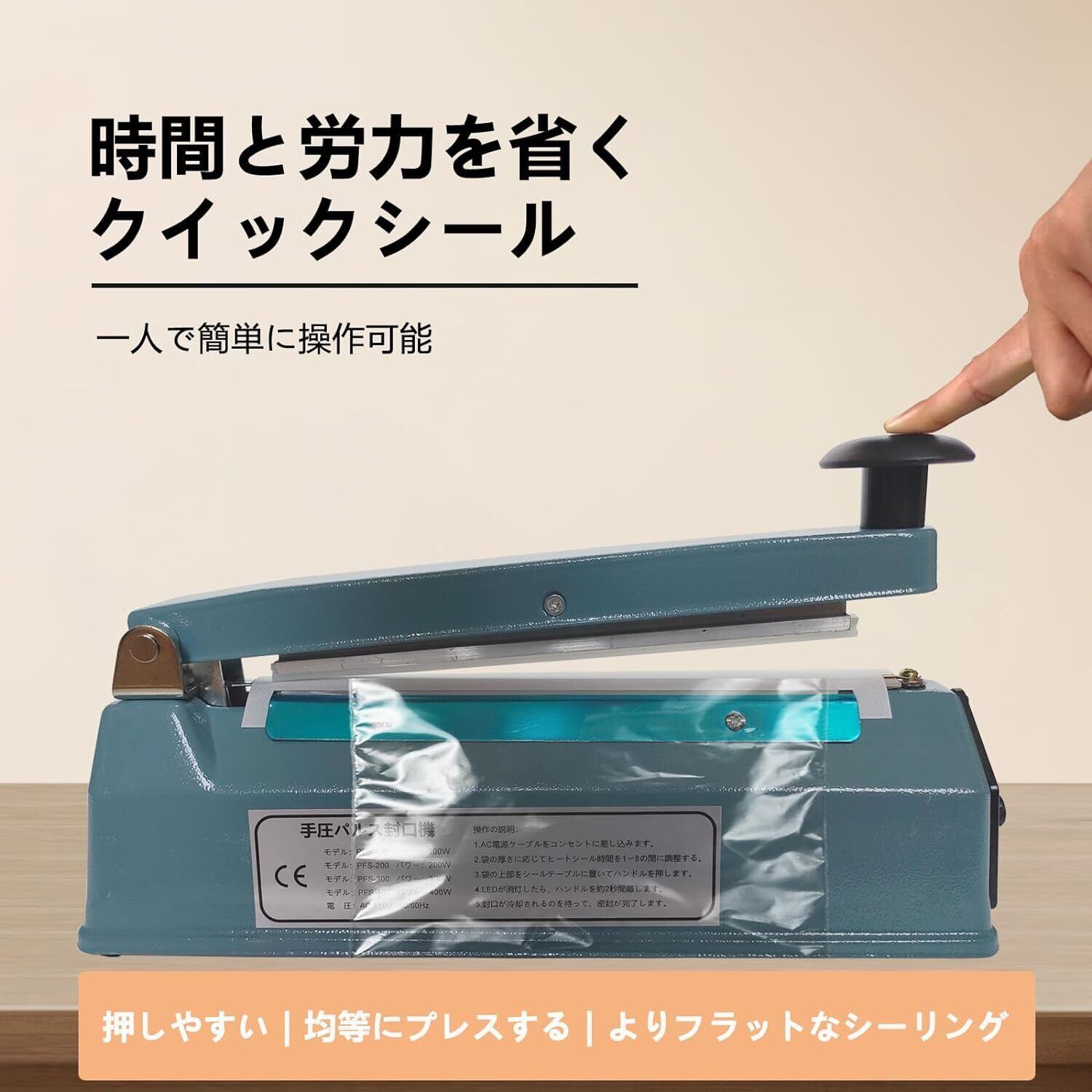 【新着商品】シーラー 卓上シーラー シーラー 業務用 200MM長 手圧シーラー機 エクストラワイド5mm圧痕 シーラー 家庭用 業務用シーラー シーラーインパルス 日本語取扱説明書付き 交換用ヒーター線付き*2(青 5MMシリーズ)