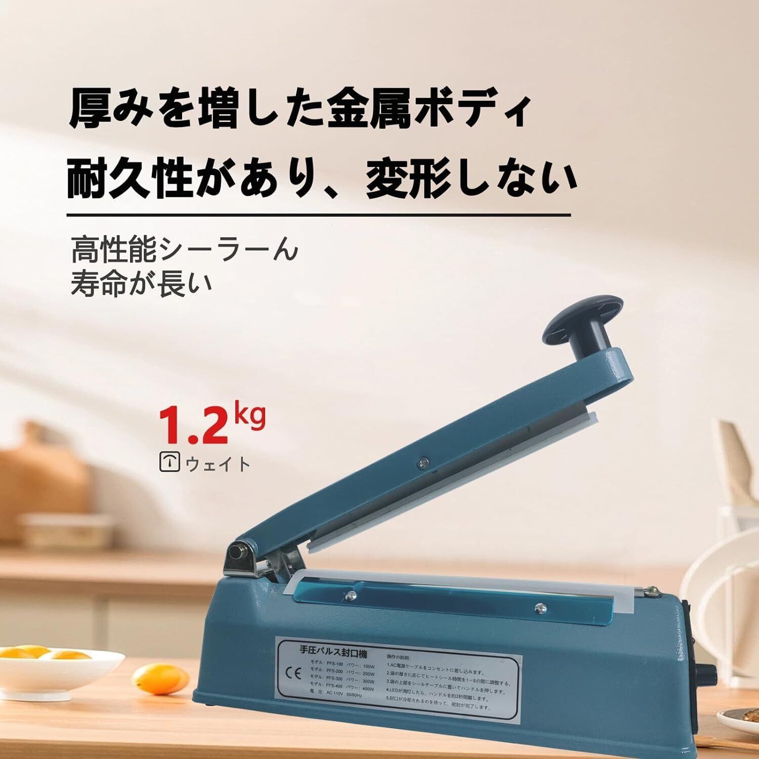 【製品仕様】ブルーメタルボディシーラー、プラスチックと比較して、より良い質感と耐久性、シールの長さ:200MM、シール幅:5MM、重量:1.20キロ、セットが含まれています:1本体、2スペア電熱キットとマニュアル1。