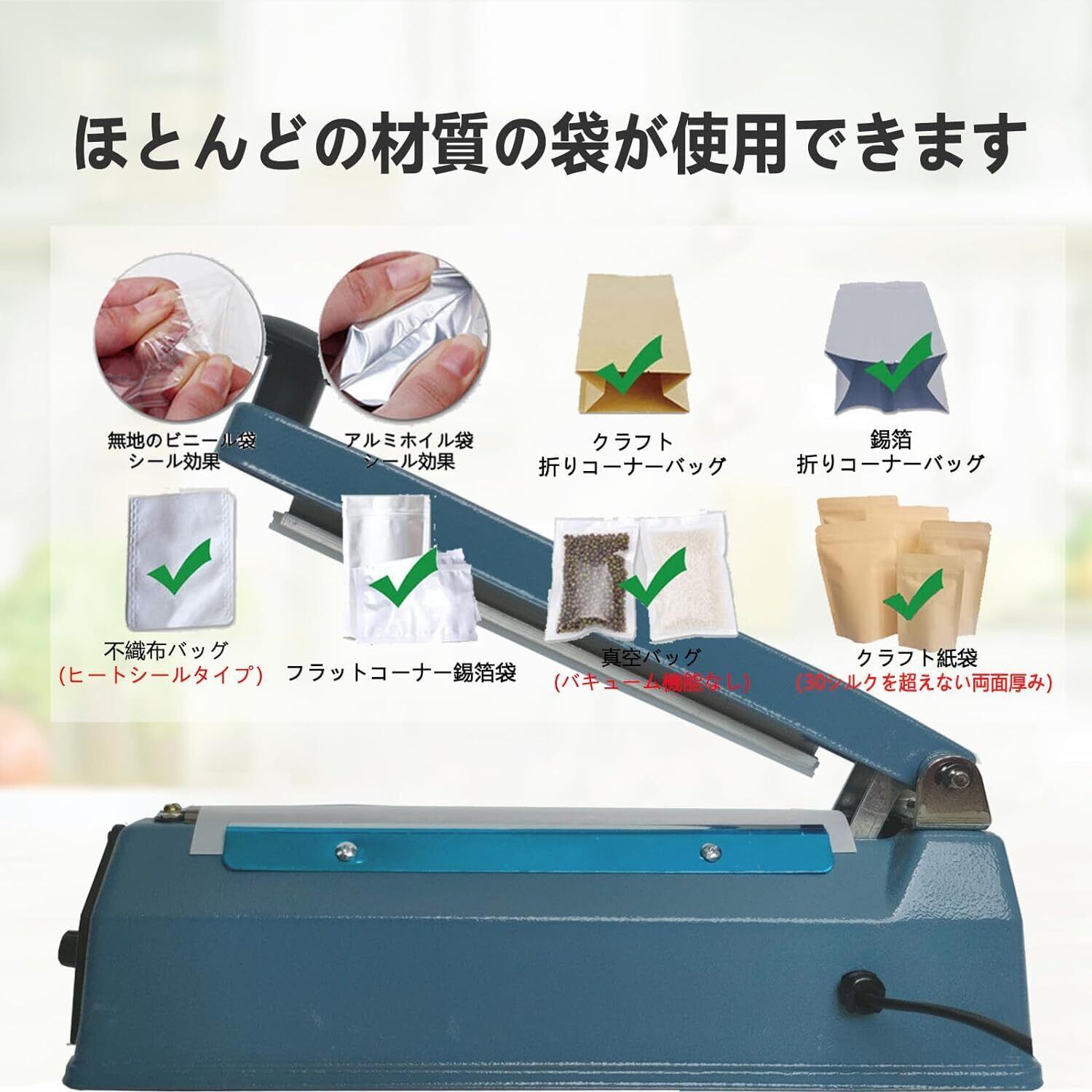 シーラー 卓上シーラー シーラー 業務用 200MM長 手圧シーラー機 エクストラワイド5mm圧痕 シーラー 家庭用 業務用シーラー シーラーインパルス 日本語取扱説明書付き 交換用ヒーター線付き*2(青 5MMシリーズ)