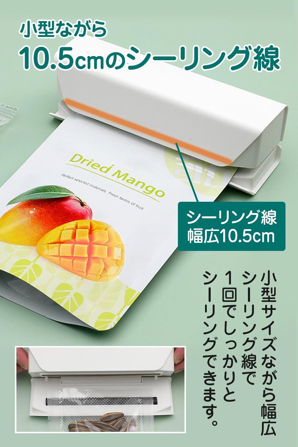 【 幅広シーリングで時短 】 小型ながら10.5cmの幅広シーリング線で一回でシーリングできます。