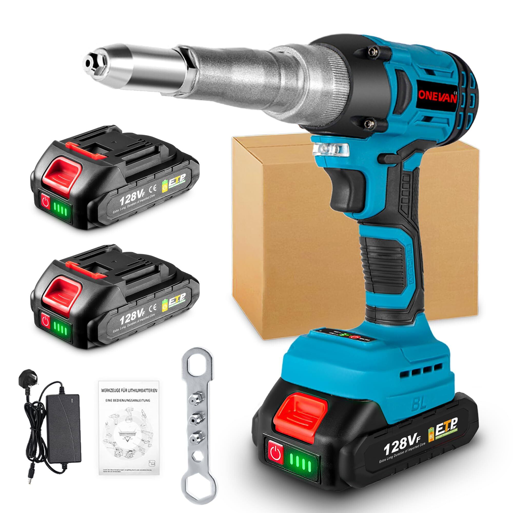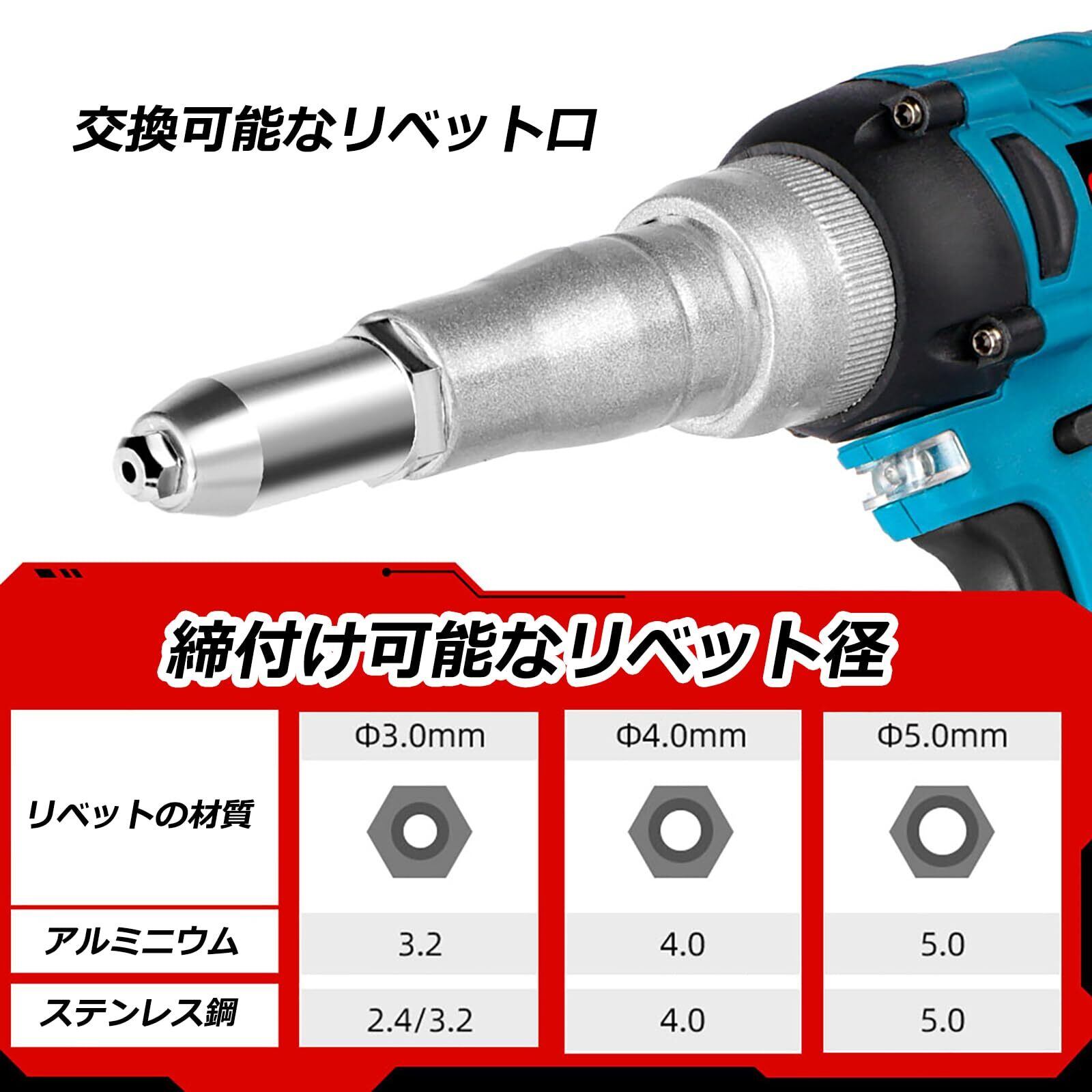 ONEVAN ハンドリベッター 充電式 電動リベットガン 2.4~5.0mm 18V マキタの18Vバッテリー互換可能 軽量 ハンドナッター リベット 工具 (本体⁺電源セット)