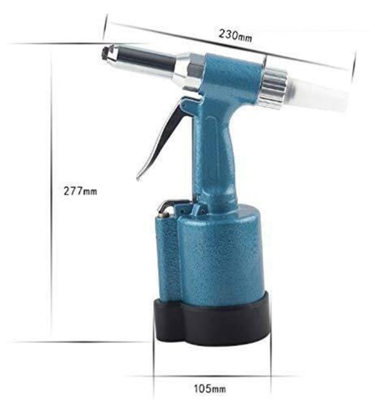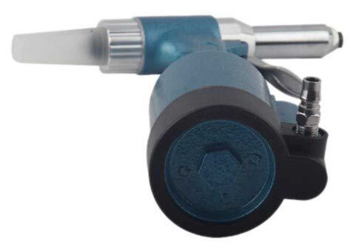 ブラインドリベットのリベット締めを行うエアー式のリベッターです。先端にリベットを挿入して対象箇所にあててからトリガーを引くだけの簡単操作。