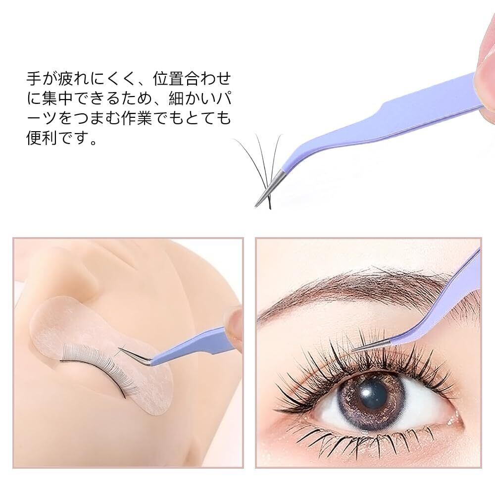 2種類セット ピンセット 精密 キャップ付き ステンレス 先曲がり ストレート 細かい毛髪やまつげ つけまつ毛 クラフトに最適 (パープル)