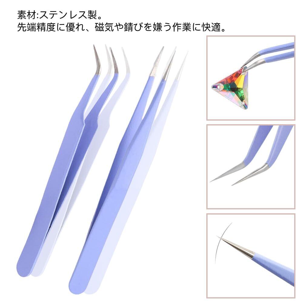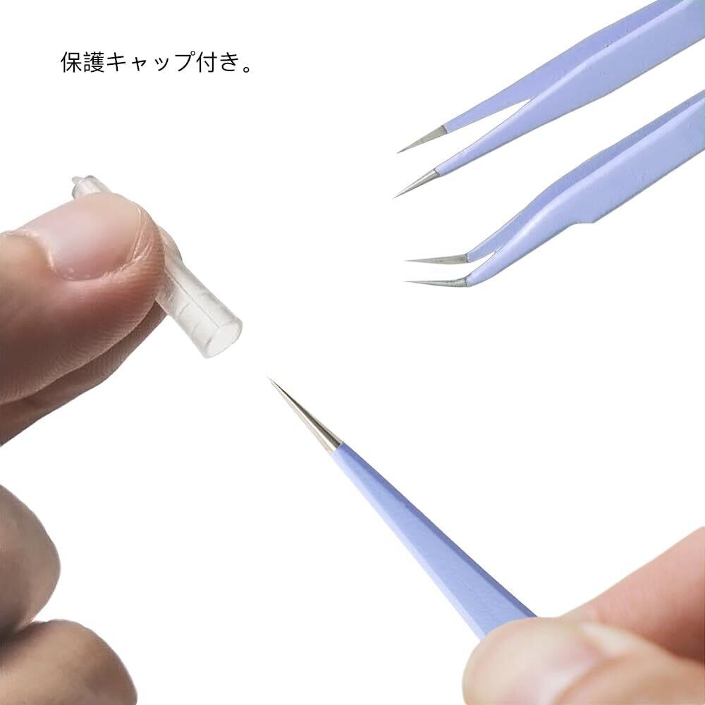 ストレート型と先曲型の2種類:ストレート型と先曲型の2種類のピンセットがセットになっています。用途に応じて使い分けができます。