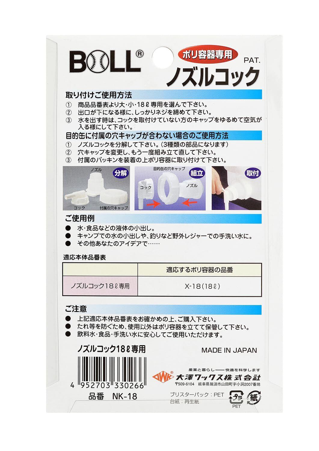 BOLL ノズルコック18L専用 NK-18