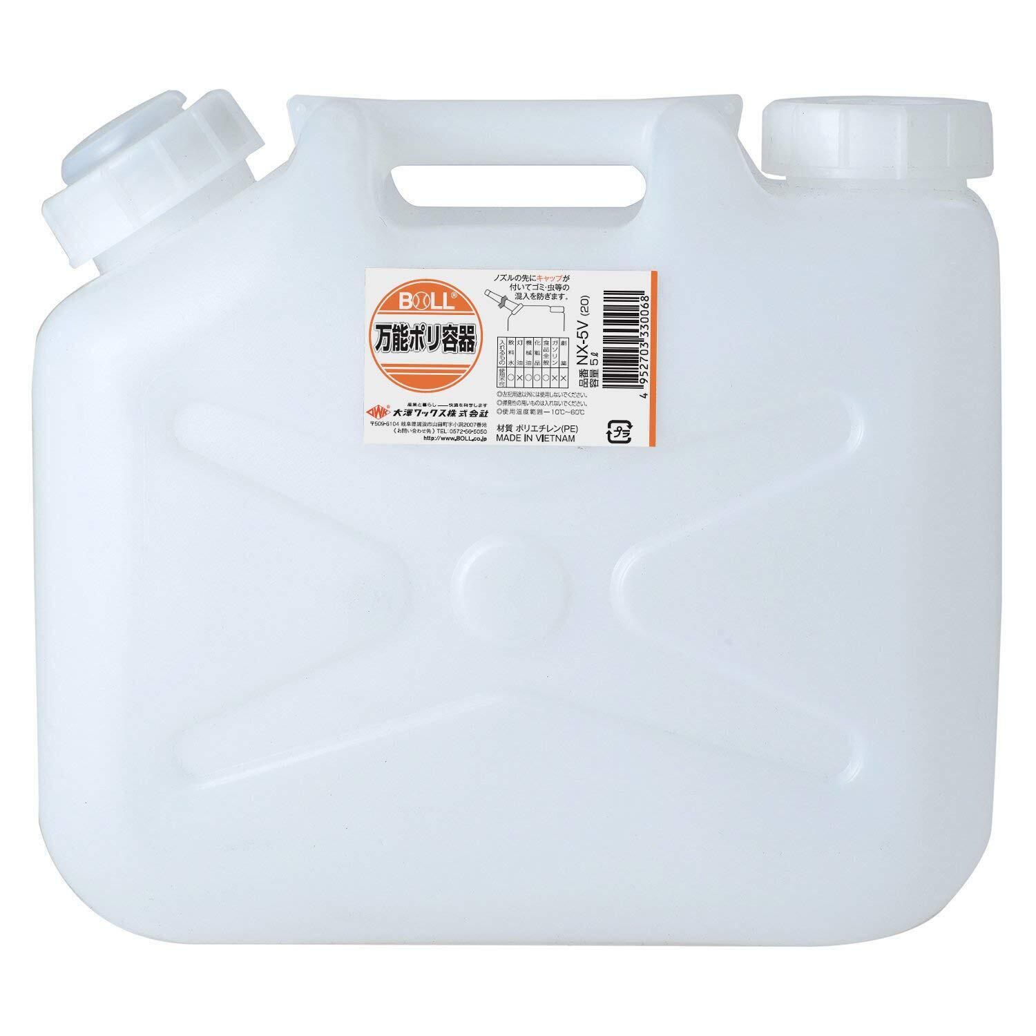【数量限定】大澤ワックス BOLL 万能ポリ容器 ノズル付5 L NX-5V