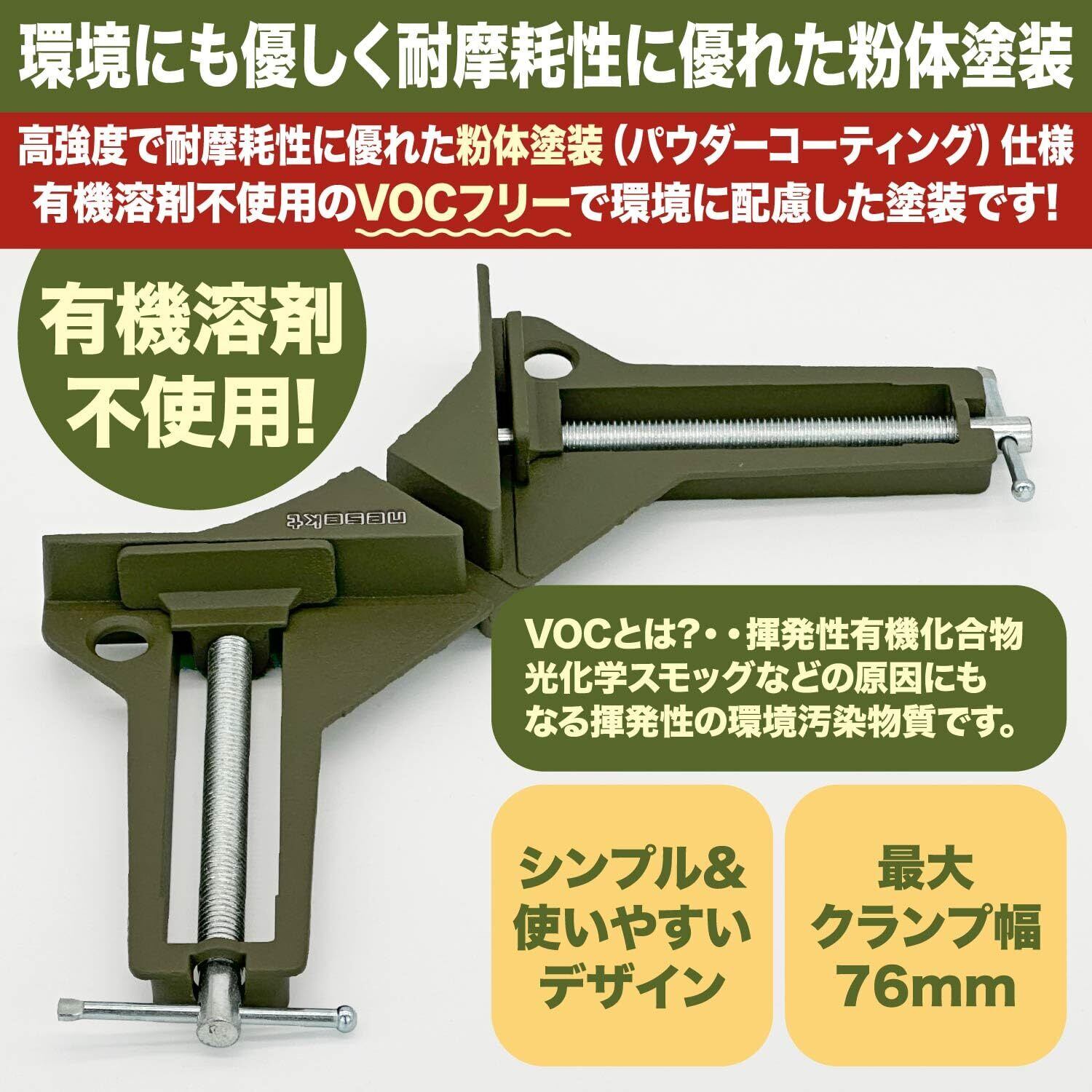 【一人DIYの強力な助っ人!】2つの材料を接合するときは誰かに材料を押さえて欲しいもの。コーナークランプがあれば一人でも高精度に加工が行えます。品質管理を徹底し、一般のお客様はもちろん、工務店様、職人様など、多くのお客様からご好評の声を頂いております。