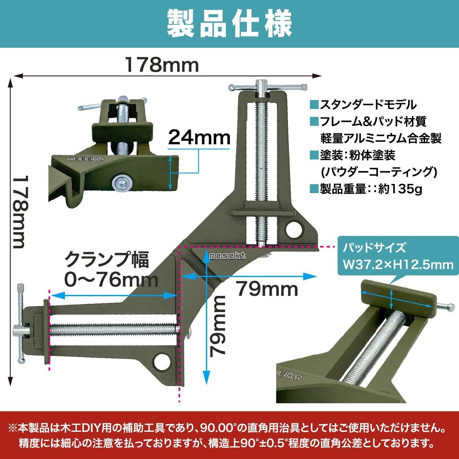 【使用用途】箱物、本棚、収納棚、机の引き出し、額縁、ベンチ、棚受けの制作など、直角での固定が必要な作業に重宝します。直角での接着や釘打ちネジ留めだけでなく、のこぎりでの切断作業時の固定など、幅広い用途で使用可能です。