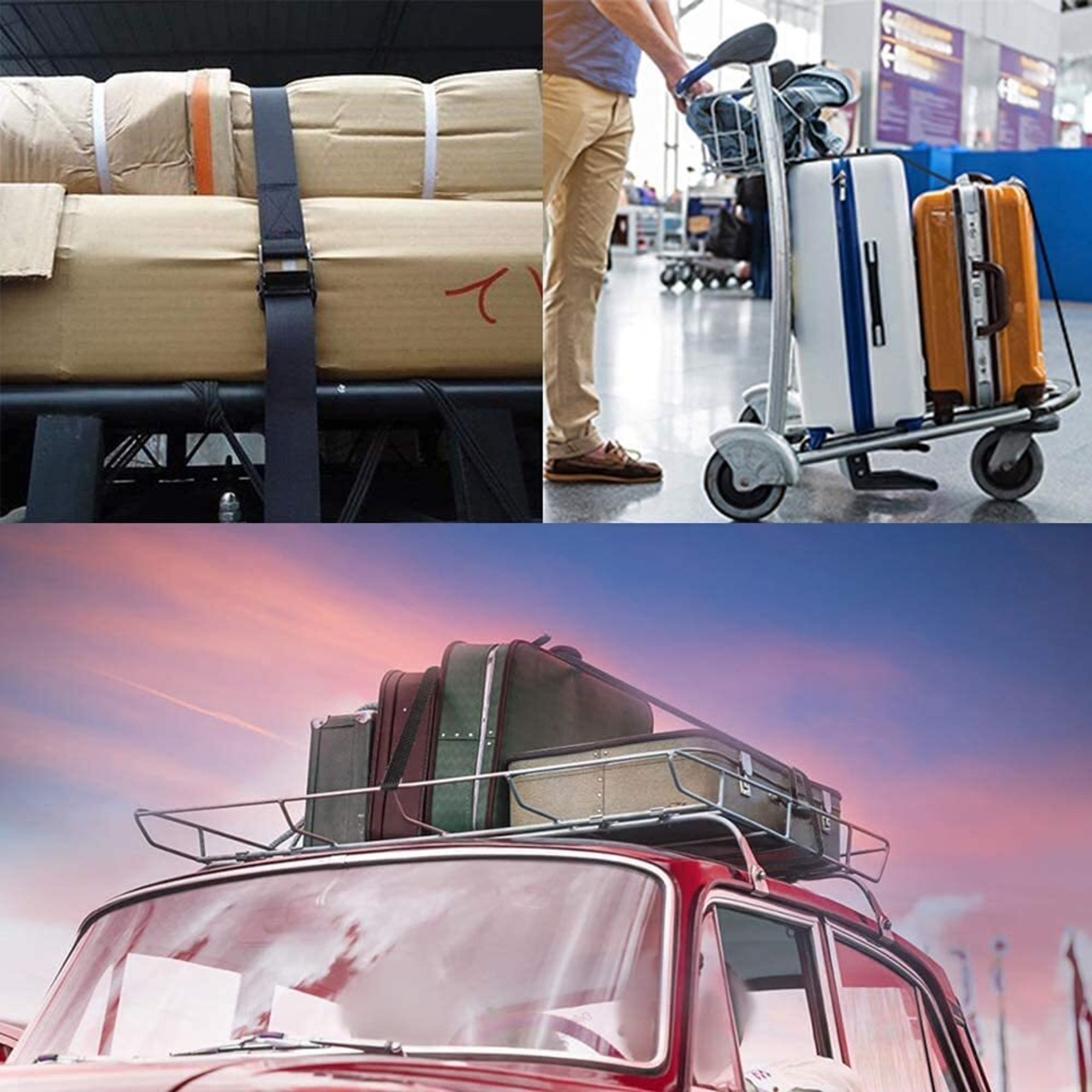 【多用途!】:荷物固定バンド 軽量物の荷締め作業に、屋内、倉庫内の崩れ防止に、トランクや家具の開き防止、荷物を梱包固定するのに、引っ越しの際、洗濯機を運ぶのに、自動車ルーフラックに長物固定時に等。