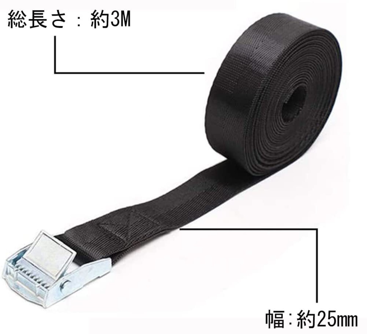 【サイズとカラー】サイズ:25mm*3m、カラー:黒い、セット:4本。破断強度:250kg、使用荷重:100kg。