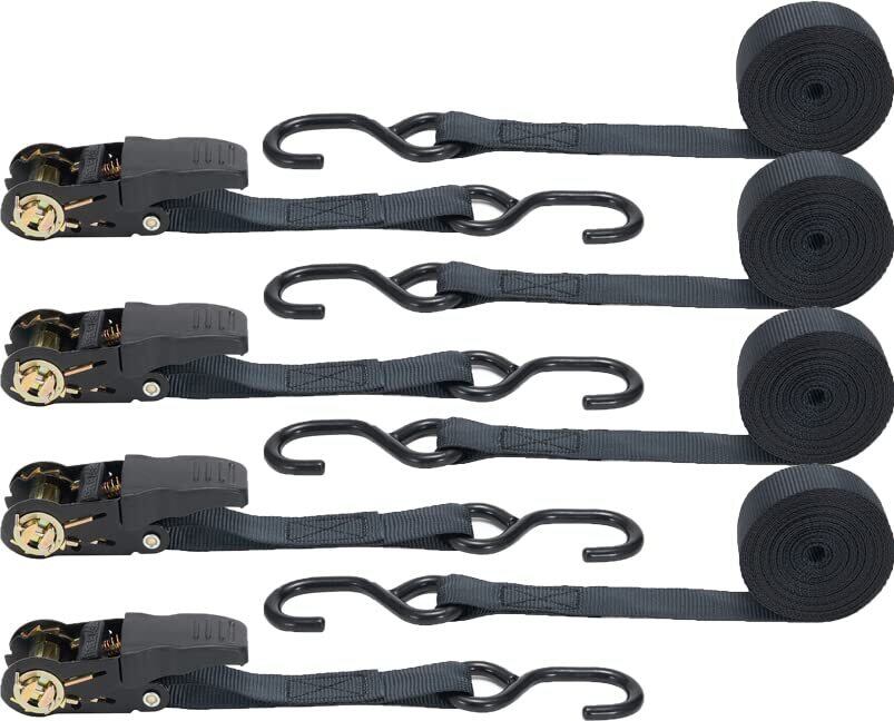 【新着商品】ラチェットベルト タイダウンベルト 2m 幅2.5cm 4本セット 荷締めベルト 破断荷重800kg/本 最大使用荷重225kg ラッシンググベルト タイダウン 引越し 運搬用 ナイロン オートバイ対応 ブラック