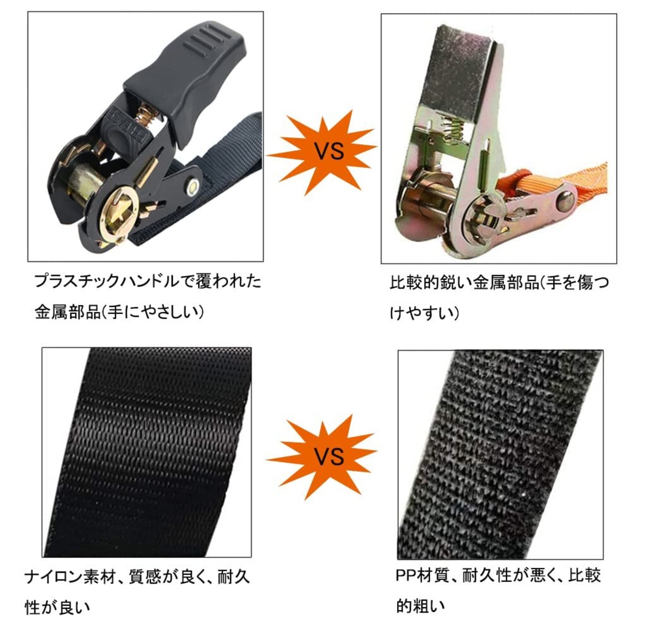 【商品仕様】長さ:2m、幅:25mm、重さ:1.8KG、セット:4本。破断強度:800kg;最大使用荷重:225kg