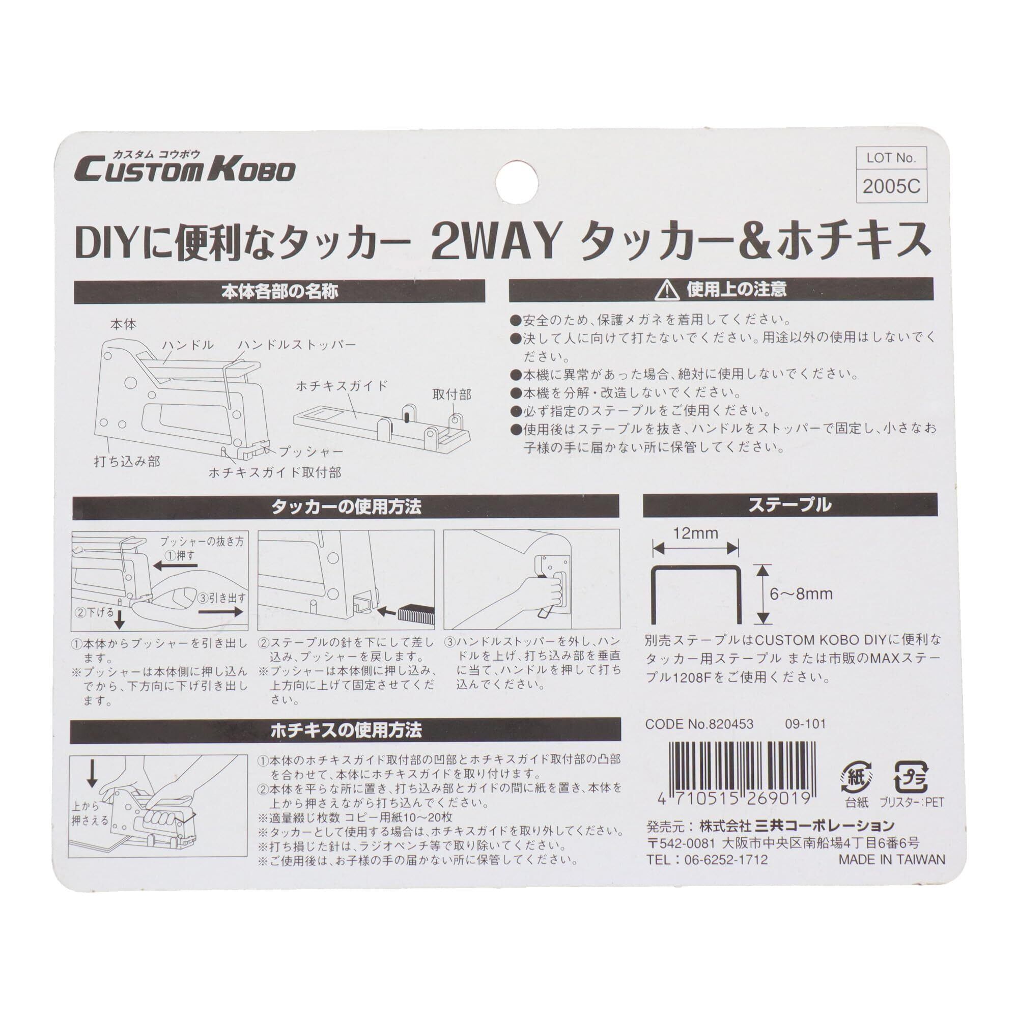 三共コーポレーション CUSTOM KOBO DIYに便利なタッカー 2WAY タッカー&ホチキス 09ー101